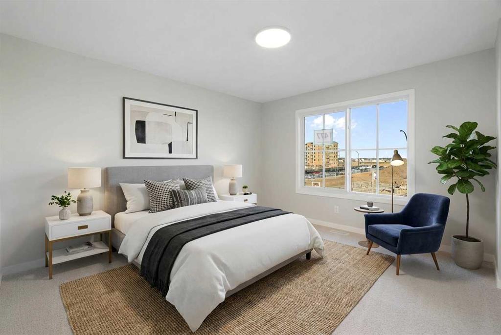 Welcome to this thoughtfully crafted attached home nestled in Rangeview, Calgary’s first garden-to-table community. Designed with timeless charm & modern functionality, this home combines character, comfort, & versatility in a way that just feels right. From the moment you pull up, the home’s classic farmhouse exterior, complete with smartboard detailing and front landscaping, makes a memorable first impression. Inside, the main floor unfolds in a bright, open-concept layout with large windows that bathe the space in natural light and elevate the overall warmth & livability of the home. At the front, the inviting living room offers the perfect place to relax or host guests, framed by soft neutral tones & high-quality finishes. The rear dining area is open & spacious—easily accommodating everything from weekday meals to larger holiday gatherings. In the centre of the home, the chef-inspired kitchen takes center stage. It’s designed for real life—with plenty of prep space, full-height cabinetry, & modern hardware—all tied together by large a large island, sleek countertops & a functional layout that keeps everything within reach. Whether you're cooking for one or a crowd, this kitchen is built to perform & impress. Just off the dining room, the rear mudroom adds practical elegance with built-in storage and direct access to your private backyard with room for a future garage—ideal for Calgary’s changing seasons and everyday convenience. Upstairs, the primary suite offers a peaceful retreat, featuring a spa-like ensuite with tasteful finishes, a walk-in shower, & space to truly unwind. Two additional bedrooms provide flexibility for kids, guests, or a home office, & the upper-level laundry adds convenience without sacrificing space. The home also includes a separate side entrance, creating an excellent opportunity to develop a future basement suite (A secondary suite would be subject to approval and permitting by the city/municipality) —perfect for multi-generational living or added income potential. Built with energy-efficient triple-pane windows, this home delivers year-round comfort & long-term savings without compromising on design. But why Rangeview? More than just a neighbourhood, Rangeview is a lifestyle centered around food, connection, & community. As Calgary’s first agri-urban community, it’s designed to inspire & connect—offering everything from community gardens & edible landscaping to seasonal food festivals, markets, & workshops. It’s a place where neighbours become friends & the simple act of growing, cooking, & sharing food brings people together. Stroll along walkable streetscapes, unwind in scenic parks, & discover a vibrant calendar of community events designed to enrich your everyday life. With stunning architecture, thoughtful urban planning, & a warm, welcoming spirit, Rangeview is a place to plant roots. Directions: