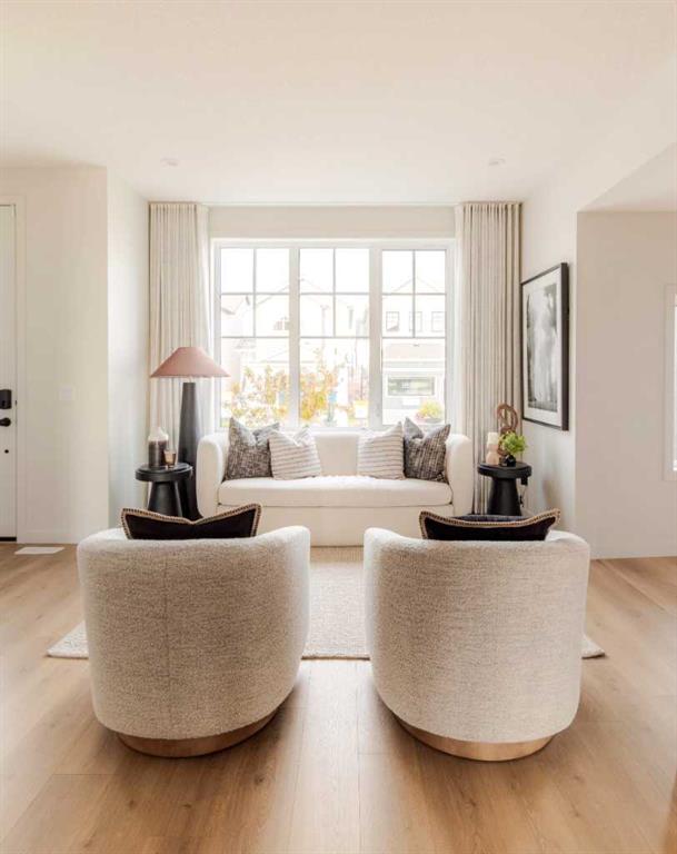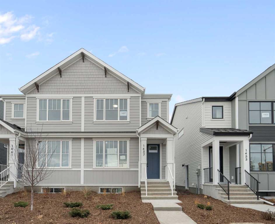 Welcome to the Aurora—a stunning paired home that blends modern farmhouse style with thoughtful functionality, located in the heart of Rangeview—Calgary’s award-winning Community of the Year. This is a home designed for real life, offering a smart layout, timeless charm, and access to one of the most vibrant, forward-thinking neighbourhoods in the city. From the street, the modern farmhouse exterior stands out with its clean lines, bold contrast, and character-rich curb appeal. Inside, a bright, open-concept layout welcomes you in, filled with natural light and layered with design details that make every space feel intentional and inviting. At the center of the main floor is the well-appointed kitchen, flanked by the living and dining areas to create a seamless, functional flow. Whether you're entertaining guests or cooking up a quiet family dinner, this kitchen delivers with quality cabinetry, ample counter space, and a layout designed for connection. Just off the main living area, a smart pocket office offers a quiet, tucked-away workspace—ideal for working from home, managing schedules, or even creative pursuits. Toward the rear, a mudroom with built-in storage leads out to your private backyard, offering a great space to relax, garden, or entertain. You also have the flexibility to develop a future garage or outdoor setup to fit your lifestyle. One of the most versatile features of the Aurora is the side entrance, providing excellent potential for a future basement suite (A secondary suite would be subject to approval and permitting by the city/municipality) —ideal for extended family, rental income, or additional space to grow into. Upstairs, a bonus room offers the perfect second living area, creating separation and flexibility for family life. The primary bedroom is a cozy retreat with a private ensuite, while two more well-sized bedrooms, a full bath, and upper laundry rough-in complete the upper level. Throughout the home, triple-pane windows and energy-conscious design help improve comfort and efficiency. But why Rangeview? Rangeview isn't just a neighbourhood—it’s a movement. Recently named Calgary’s Community of the Year, Rangeview is a one-of-a-kind agri-urban community inspired by food, connection, and sustainable living. With community gardens, orchards, edible landscaping, and seasonal events, this is a place where growing, sharing, and connecting are part of everyday life. Walkable streetscapes, welcoming green spaces, and architecture with real character make Rangeview feel like home the moment you arrive. Whether you’re picking fresh herbs from the communal garden, attending a local workshop, or simply chatting with neighbours on your front porch, life in Rangeview is rooted in a slower, more intentional rhythm. The Aurora in Rangeview isn’t just a home—it’s a lifestyle.