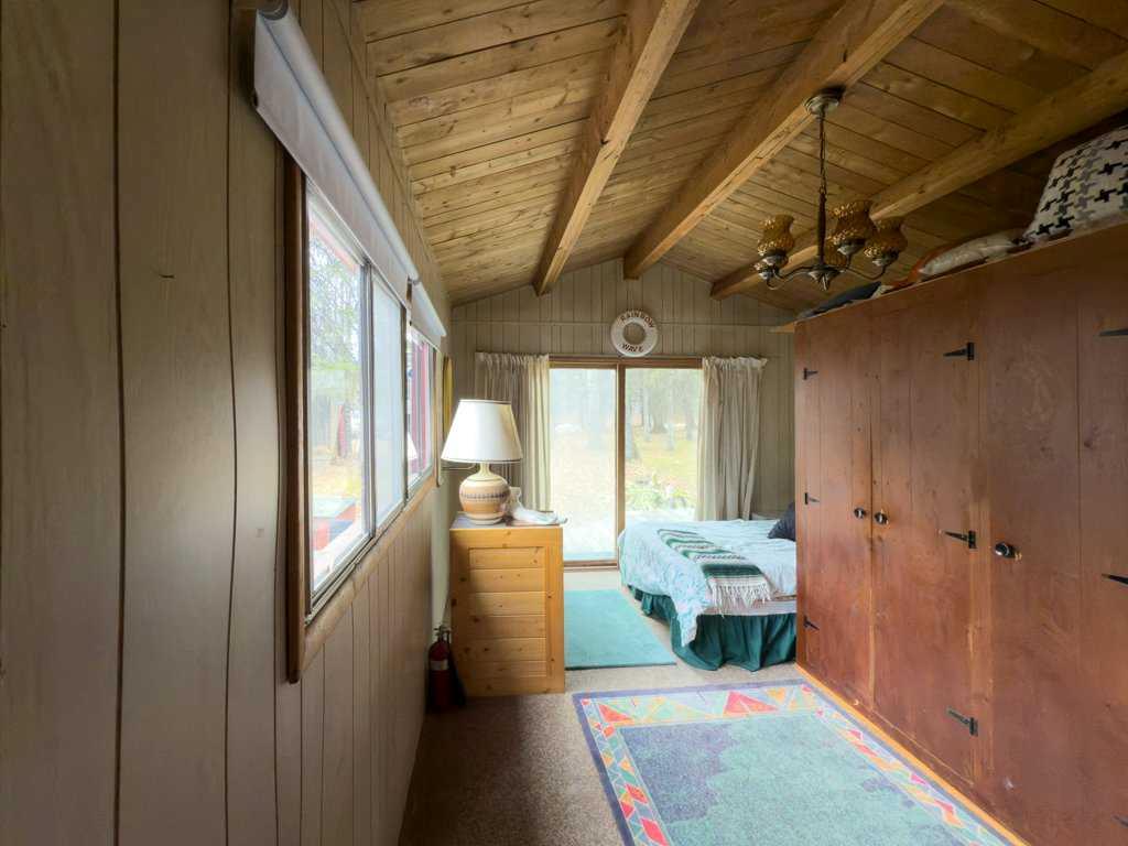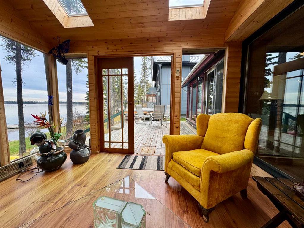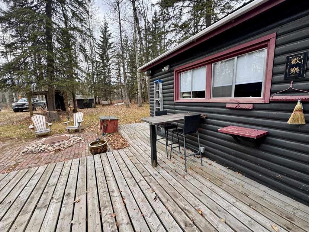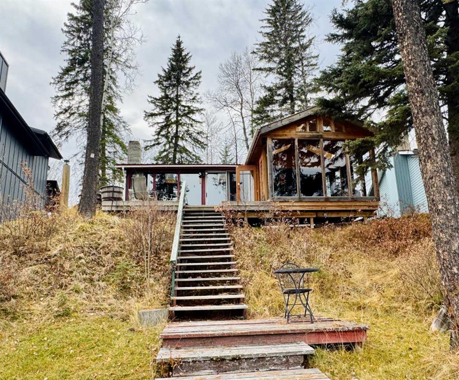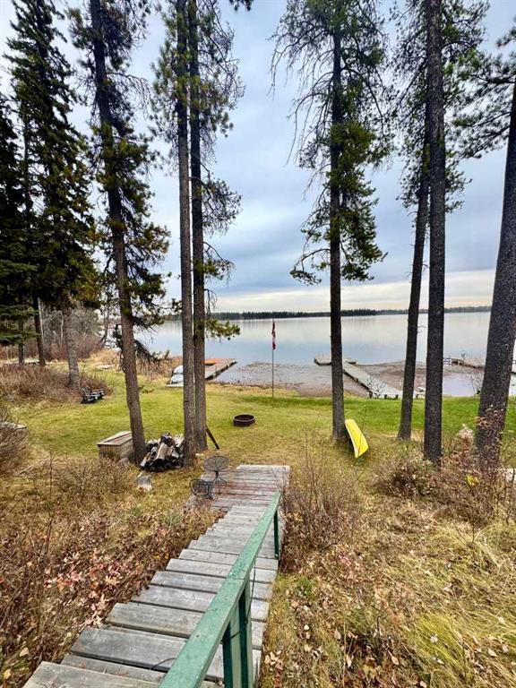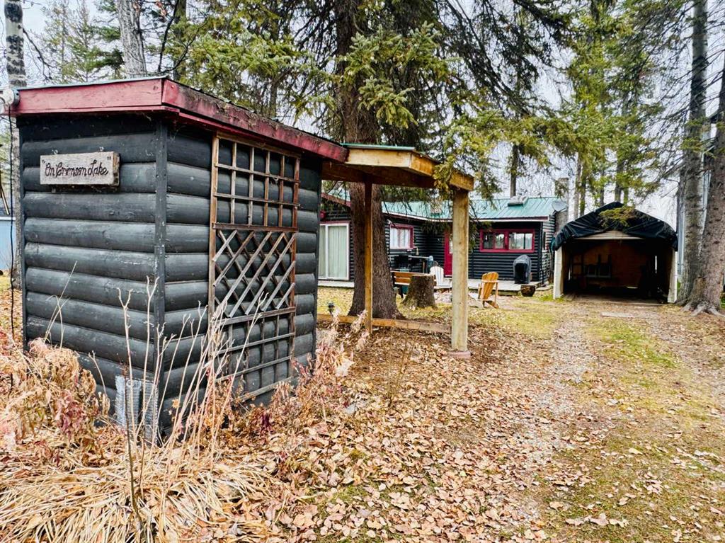 Has lake life been calling your name? Here's your opportunity to own a charming cabin on a lease lot in Crimson Lake Provincial Park with 40' of lake frontage. You'll feel the serenity of lake life as soon as you step through the front door and into the large great room where you can look out through the oversized windows to the beautiful lake vista. There's a small kitchen area that blends with the wide open living space and amazing rock surround fireplace. Patio doors open to the lake side deck and stunning sunroom. The one bedroom is large enough for multiple beds including custom built bunkbeds and also has a patio door that opens to a deck on the west side. An alcove is currently being used as another bedroom and has a lovely view of the lake (there is presently sleeping accommodations for 6 people). The three piece bathroom has a large closet (previous sauna?) and all furnishings in the cabin are included with the sale. The lot has just the right amount of landscaping with a set of stairs going to the lake front and fire pit as well as a brick patio and fire pit near the back deck. There's a feature rock garden and fountain at the front of the property and several storage sheds. This is a Provincial Lease which renews in January 2045, PML 820381. Annual lease payment of $1356.00 (due January 1, 2026) and the assignment fee is $3150,00 + GST.