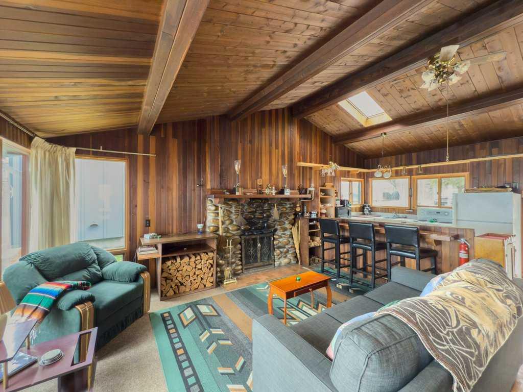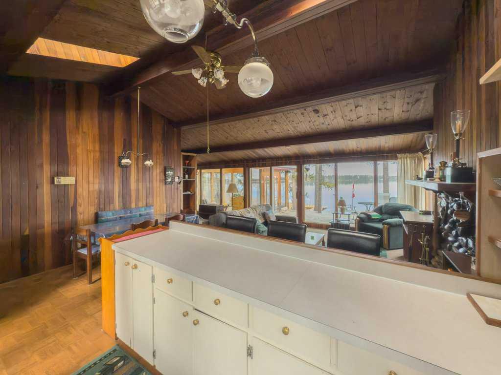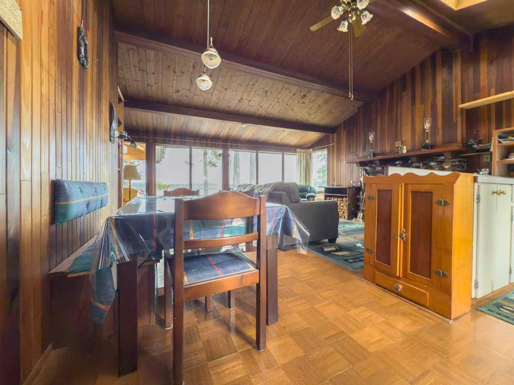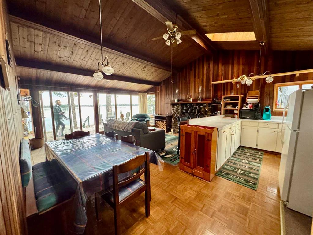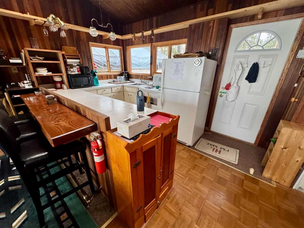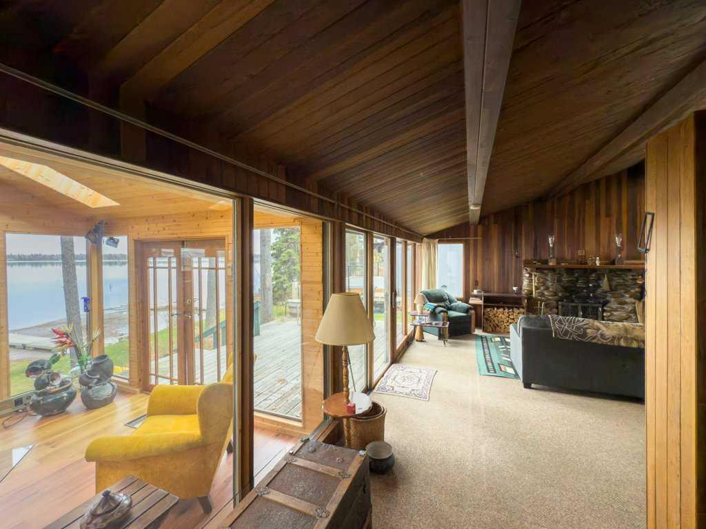 Has lake life been calling your name? Here's your opportunity to own a charming cabin on a lease lot in Crimson Lake Provincial Park with 40' of lake frontage. You'll feel the serenity of lake life as soon as you step through the front door and into the large great room where you can look out through the oversized windows to the beautiful lake vista. There's a small kitchen area that blends with the wide open living space and amazing rock surround fireplace. Patio doors open to the lake side deck and stunning sunroom. The one bedroom is large enough for multiple beds including custom built bunkbeds and also has a patio door that opens to a deck on the west side. An alcove is currently being used as another bedroom and has a lovely view of the lake (there is presently sleeping accommodations for 6 people). The three piece bathroom has a large closet (previous sauna?) and all furnishings in the cabin are included with the sale. The lot has just the right amount of landscaping with a set of stairs going to the lake front and fire pit as well as a brick patio and fire pit near the back deck. There's a feature rock garden and fountain at the front of the property and several storage sheds. This is a Provincial Lease which renews in January 2045, PML 820381. Annual lease payment of $1356.00 (due January 1, 2026) and the assignment fee is $3150,00 + GST.
