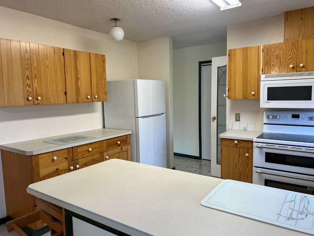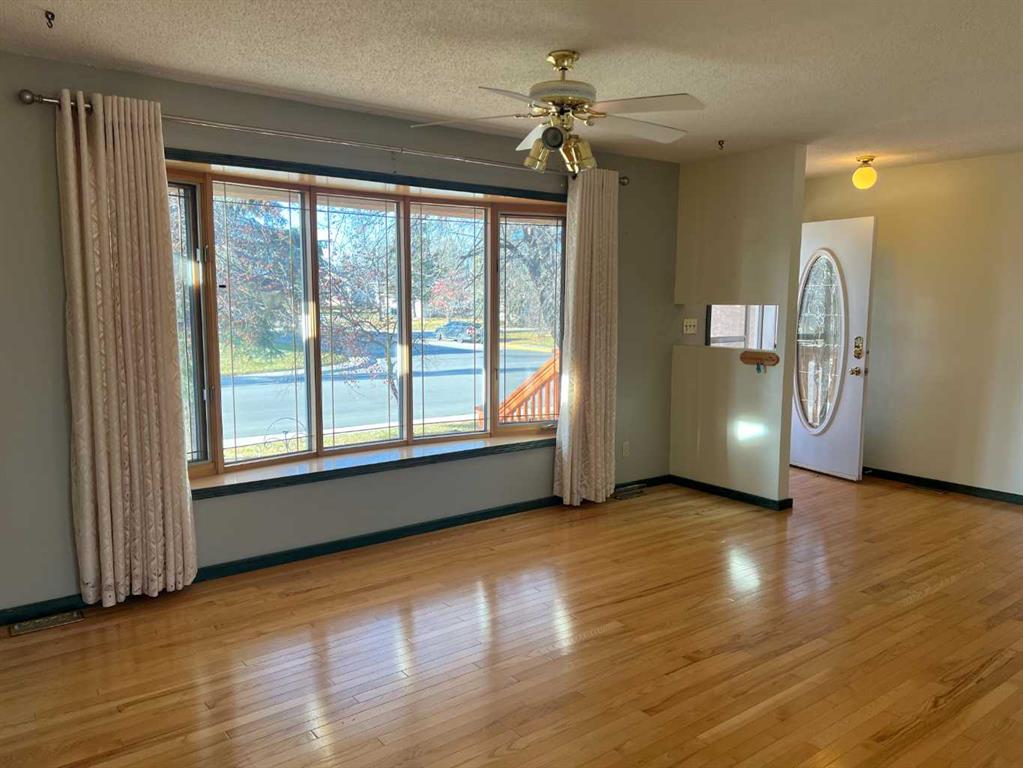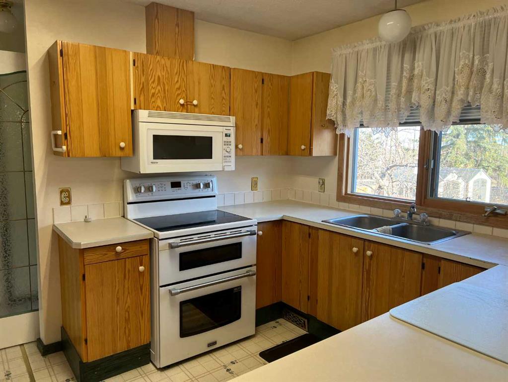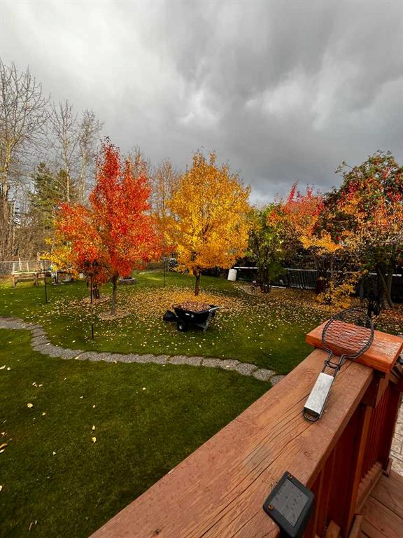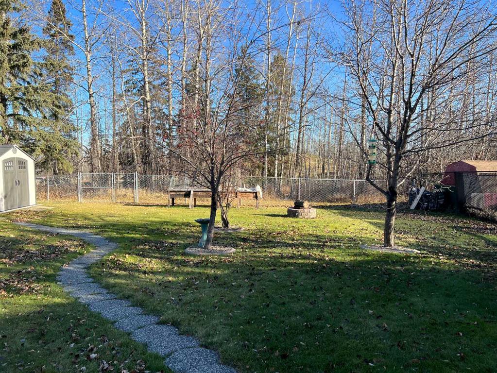 WELCOME TO YOUR FOREVER HOME BACKING ON TO GREENZONE !! LOCATION IS THE NUMBER ONE RULE IN REAL-ESTATE. You have a park in your own back yard with different kinds of apple, pear and crabapple trees backing on to green zone and plum trees in the front yard. Large gate for you to access the green zone for all your hiking, biking, snowmobiling & quading. 2 sheds for all your toy storage. It is like living in the country with town amenities. Your home has 3 bedrooms & 1 full bathroom, large living room with bay window, hardwood flooring, the kitchen has loads of counter space with lots of cupboards and a side pantry. Kitchen comes with fridge, stove, dishwasher and microwave. Dining room has Patio doors to a smaller deck. Just off the back door you will find a large deck where you can enjoy your morning coffee or a family BBQ. Down stairs you have a huge family room with a wood burning fireplace to keep you cozy and warm this winter. You have 1 more bedroom, 1\2 bath and office.. ALL YOUR MAJOR HOME UP GRADES ARE DONE FOR YOU. Newer furnace, newer water heater, outside has stucco siding, newer shingles, some newer windows. All you may want to do is upgrade your flooring downstairs this winter. Heated 30 by 16 finished garage with hot and cold-water taps. Copper wiring throughout home. This home has been LOVED by the same family since she was built in 1980. No smoking or pets just a wonderful home waiting for a new family to move into and enjoy the home and yard.