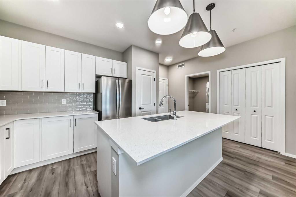 Welcome to Unit 212 in Sandgate at Mahogany — a brand-new, never-occupied 2-bedroom, 2-bathroom condo in Calgary’s most awarded lake community. This pristine unit offers modern, open-concept living with premium finishes, including quartz countertops, stainless steel appliances, a large island with breakfast bar seating, and stylish low-maintenance LVP flooring throughout. Enjoy an abundance of natural light through oversized windows, a private 21-foot east-facing balcony (with a gas line), and a functional layout, ideal for professionals, couples, or roommates. The spacious primary suite features a walk-through closet and a full ensuite, while the second bedroom offers excellent flexibility for guests, work-from-home, or shared living. Additional features include in-suite laundry, titled underground parking, bike storage, fitness center access, a lending library, a guest suite for visitors, and of course, year-round lake access! Situated just steps from Mahogany Lake, Village Market shops, restaurants, cafes, and walking paths — all while offering quick access to Seton, South Health Campus, and major roadways. This is an exceptional opportunity to lease a fresh, untouched unit in one of Calgary’s most desirable communities. Immediate possession available.
