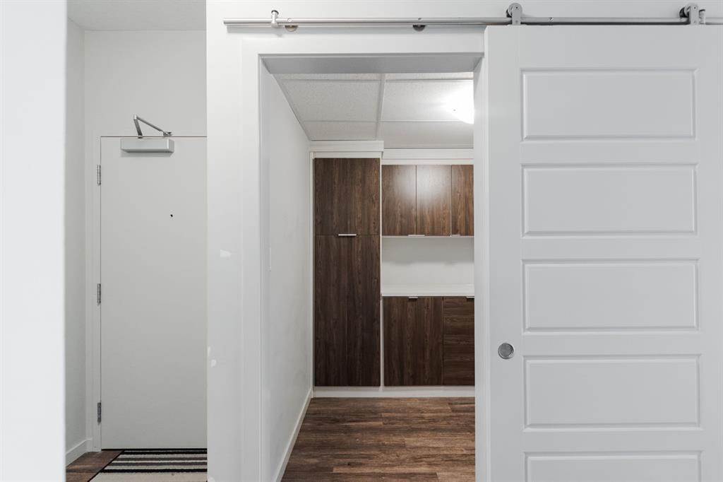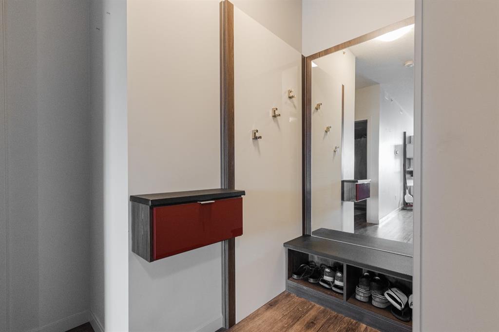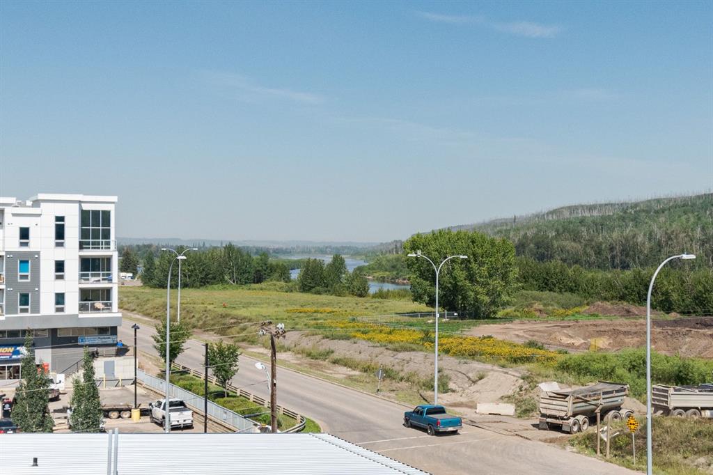 Welcome to 402-8106 Fraser Avenue! This modern, 2 bed 2 bath, TOP FLOOR CORNER UNIT offers the perfect blend of style, function, and low-maintenance living in a highly walkable and convenient downtown location. With thoughtful upgrades throughout, views of the Clearwater River, and the comfort of air conditioning, this home is ideal for anyone seeking a turnkey space with urban appeal. Step outside onto the covered balcony with Duradeck finishing, go for a paved run along the Clearwater River trail, and enjoy the convenience of local shops and visitor parking right at your doorstep! Owners also have the added benefit of private underground parking with side street access. This quiet parkade is both gated and heated, allowing you to park securely in year-round comfort and convenience. Take the elevator straight to the top floor, where this unit is quietly tucked away at the end of the hall with only one neighbouring suite. Custom touches by CALIFORNIA CLOSETS begin the moment you enter with a built-in front entrance unit with bench, mirror, shoe storage and floating drawer creating a functional and stylish entry. The oversized laundry room has also been upgraded with custom cabinetry and storage solutions by California Closets. The bright, open living space features a well-appointed kitchen with stainless steel appliances, a tile backsplash, and a Culligan water filtration system installed under the sink. The entire suite is finished in luxury vinyl plank flooring. The living area is anchored by a sleek pendant light and a custom t.v. entertainment unit professionally installed by California Closets that tie the space together. The primary bedroom offers an open closet design with built-in drawers and slide outs, plus a stylish four-piece ensuite complete with a floating vanity and upgraded storage solutions. The second bedroom has peaceful river views, a generous custom closet, and easy access to the second four-piece bathroom with matching modern finishes. Built in 2016, this building is professionally managed and well maintained. LOW CONDO FEES include water, sewer, garbage collection, and exterior insurance. A rare top-floor corner unit offering with elevated design and a premium location—schedule your private tour today.