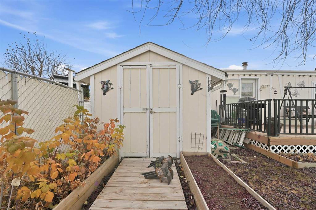 Nestled just minutes from town and surrounded by mature trees, this well-maintained mobile home park offers the perfect balance of peace, convenience, and community. Residents enjoy access to a recreation centre featuring a pool table, shuffleboard table, and a rentable kitchen, plus potential RV parking within the park. This inviting 3-bedroom, 2-bathroom home shows pride of ownership throughout. The attached double garage is insulated, drywalled, and roughed-in for gas, while a spacious mudroom and flex space addition connects directly to the garage for added functionality. The open-concept kitchen, dining, and living room form the heart of the home, complete with a gas fireplace and built-in hutch for added charm and storage. The kitchen renovation features modern cabinetry and stainless steel appliances, offering a clean, updated look. At the front of the home are two comfortable bedrooms and a renovated main 4-piece bathroom, while the primary suite at the back includes a walk-in closet and a beautifully updated 3-piece ensuite with a walk-in shower. Additional upgrades include the removal of Poly-B plumbing, updated flooring and paint, and a laundry/storage room with washer and dryer included. Experience relaxed, affordable living in a quiet, hidden gem of a community - a place where pride of ownership truly shines.