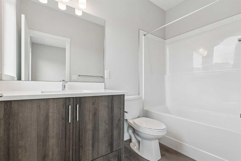 Built in 2025 and ready for quick possession, this stylish, never-lived-in 2-bedroom home offers just over 1,300 sq. ft. of bright, open-concept living — perfect for first-time buyers, investors, or anyone seeking low-maintenance modern living. Step into a beautifully designed kitchen featuring rich cabinetry, white quartz countertops, stainless steel appliances, and durable luxury vinyl plank flooring that flows throughout the main level. The open layout connects seamlessly to the dining and living areas — an inviting space for both entertaining and everyday comfort. Enjoy summer evenings on your private balcony (gas line ready for BBQ season!) and appreciate thoughtful details throughout, including raised bathroom vanities, upper-floor laundry, and a double attached garage offering extra storage and winter convenience. Upstairs, both bedrooms feature their own private ensuite — a rare find that adds flexibility and privacy. Located in a vibrant SW Calgary community, just minutes from the CTrain, major roadways, shopping, Fish Creek Park, and local restaurants. Pet-friendly and low-maintenance, this townhome combines comfort, convenience, and value — an incredible opportunity to own new without the wait.