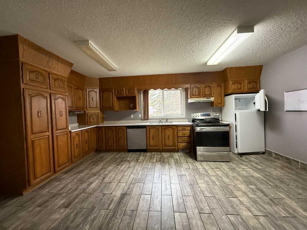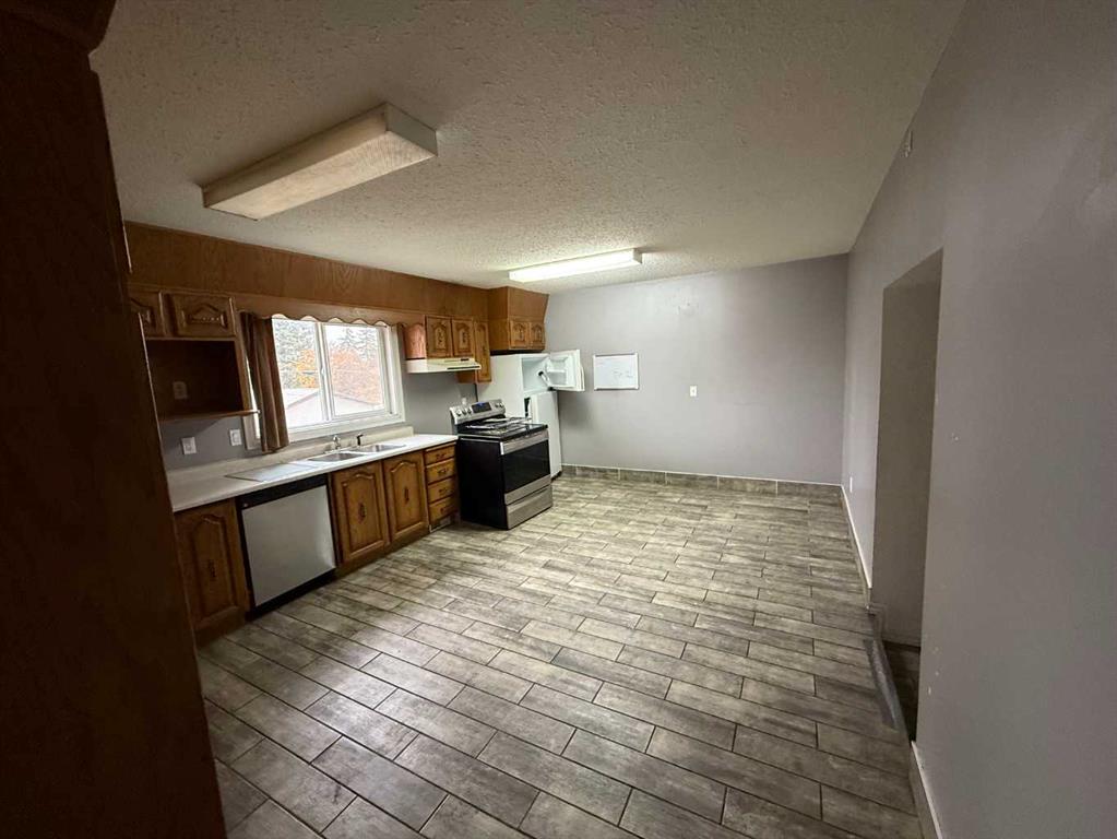 Welcome to this spacious and well-maintained 5 bedroom, 2 bathroom home located in the charming community of Kitscoty with a short walking distance to main street. With over 1,200 sq ft on the main level, this property offers plenty of room for the whole family. You’ll love the many updates completed over the years, including newer flooring, shingles, windows (2015), electrical upgrades, bathrooms, trim and doors. The open and airy layout features large rooms with a modern feel, while the kitchen stands out with its abundant cabinetry and lots of room to add a big island if that's on your wish list. Relax in the inviting front living room, complete with a cozy corner fireplace — the perfect place to unwind at the end of the day. The walkout basement adds even more living space, offering a bright and comfortable family room plus plenty of storage and a basement suite for added potential revenue. Outside, the fully fenced backyard includes a garden shed and back-alley access, with lots of room for a garage. This home truly combines comfort, space, and modern updates — making it a fantastic choice for families looking to settle in a friendly small-town setting or perfect for a investor looking to expand their portfolio. "Property is sold as is where is"