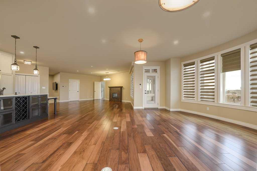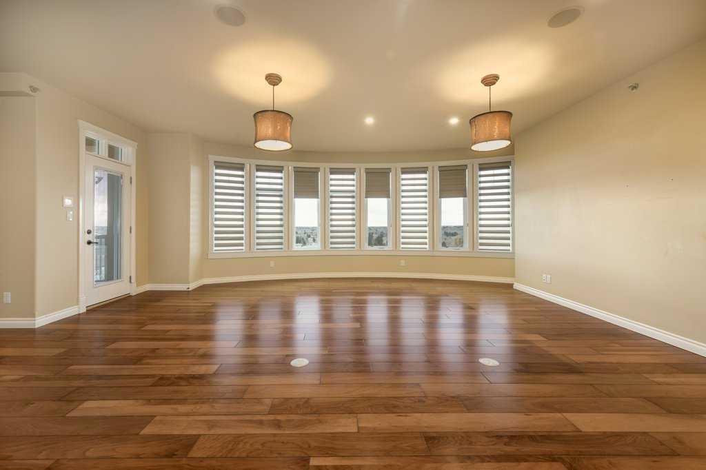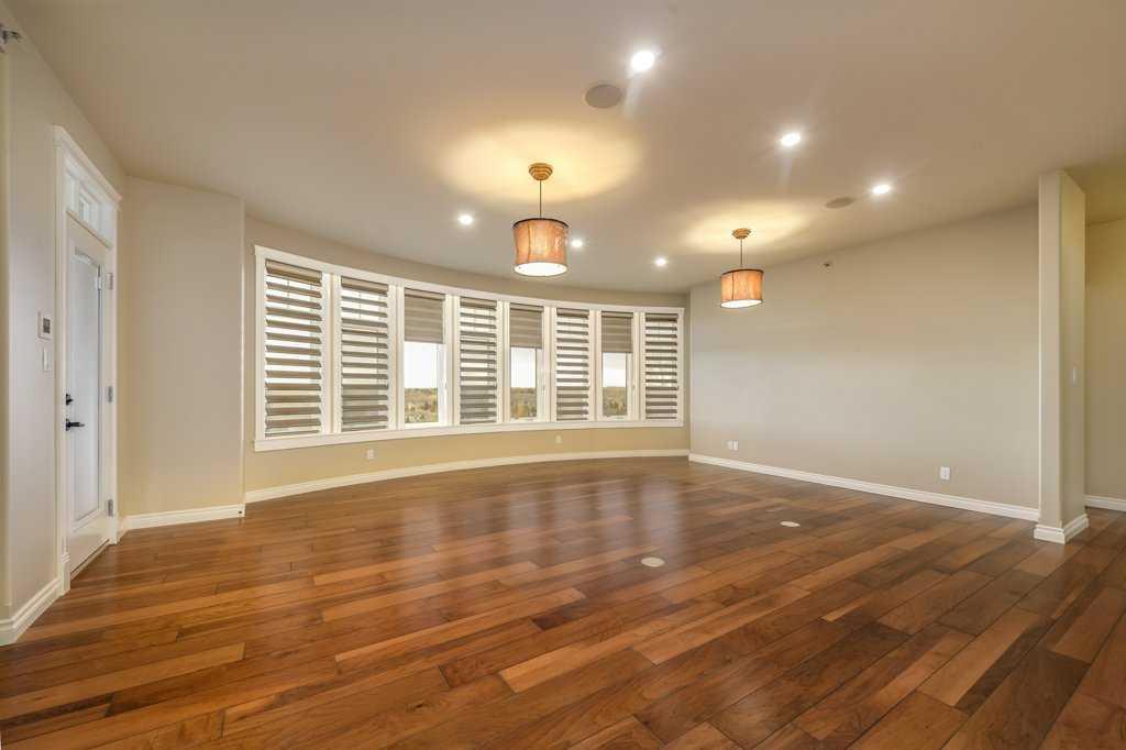 Experience luxurious condo living at its finest in one of Red Deer’s most prestigious buildings. This stunning top-floor unit offers nearly 1,950 sq ft of meticulously maintained living space, proudly presented by the original owners. Upon entering, you’ll be captivated by the expansive open-concept layout, featuring a spacious living room, elegant dining area, and a beautifully upgraded kitchen—all enhanced by gleaming hardwood floors. The chef-inspired kitchen boasts a massive island, granite countertops, custom cabinetry, a full tile backsplash, and a convenient corner pantry. The living room is bright and inviting, bathed in natural light from the large south-facing windows, and offers plenty of space for entertaining or relaxing. The primary suite is a true retreat, complete with a two-sided fireplace, walk-in closet, and a luxurious 4-piece ensuite. You’ll also find a second generous bedroom, a separate den with custom built-in desk and cabinetry, and another well-appointed 4-piece bathroom. A spacious laundry room located just off the primary bedroom adds to the home’s thoughtful design and convenience. Step out onto the large southwest-facing balcony and take in the incredible views, perfect for enjoying morning coffee or evening sunsets. This exceptional unit includes two titled underground parking stalls and access to superb building amenities such as a fitness centre and a multi-use party room. Offering a rare combination of size, style, and location, this immaculate condo truly defines luxury living in Red Deer.