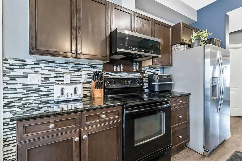 Welcome to Sunrise Terrace in High River! This bright and spacious ground-level bungalow offers the perfect blend of comfort, convenience, and low-maintenance living. Featuring 2 bedrooms and 2 full bathrooms—including a versatile third bedroom or den with French doors—this home offers flexibility for your lifestyle. The open-concept floor plan is filled with natural light and features a stylish kitchen with dark granite countertops, breakfast bar, and adjoining dining area with sliding doors leading to the east-facing patio. The spacious living room connects seamlessly to the kitchen and dining area, creating an inviting space for everyday living and entertaining. Enjoy two private patios—one east-facing to capture the morning sun and one west-facing with beautiful mountain views and evening light. The primary bedroom includes a full 4-piece ensuite, and there’s a second full bathroom conveniently located near the additional bedroom. With updated vinyl plank flooring throughout, newer washer, dryer, and microwave, two parking stalls, and an in-unit storage area, this home truly has it all. Sunrise Terrace is a well-managed complex with low condo fees that cover most utilities, plus easy access to walking paths, parks, schools, and local amenities.