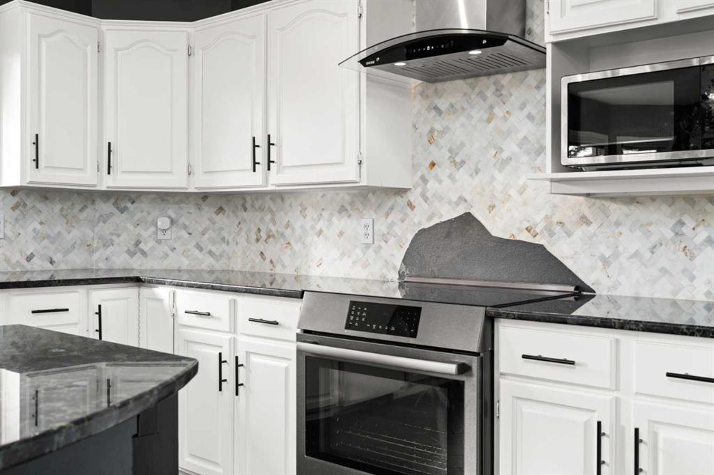 ** MOTIVATED SELLER IMMEDIATE POSSESSION ** Welcome to this beautifully upgraded 4-bedroom, 4-bathroom home in the highly sought-after community of Lakeside Greens in Chestermere. This thoughtfully renovated property offers comfort, function, and style with a long list of recent updates. The heart of the home is the stunning renovated kitchen (2022) featuring professionally painted cabinets, a large island with granite countertops, marble backsplash, updated hardware, and an induction stove. The main floor boasts gorgeous herringbone-patterned tile flooring with a hardwood look, a refreshed fireplace surround, new baseboards, and a custom closet in the powder room (2024). Enjoy year-round comfort with a new furnace, A/C, and thermostat installed in 2024, as well as a new hot water heater (2023). The finished basement features a fully renovated bathroom (2025), new carpet, updated flooring in the bar area, and upgraded laundry (2020). Step outside to an entertainer’s dream backyard, complete with an extended composite deck, waterproof storage underneath, a hot tub, barnboard privacy wall (2023), and beautifully landscaped gardens (2021). The exterior upgrades continue with updated front landscaping and concrete (2025) and new roof in 2013. Backing onto a walking path and playground and just a short walk to parks, schools, the beach, rec centre, and shopping, this home truly has it all!