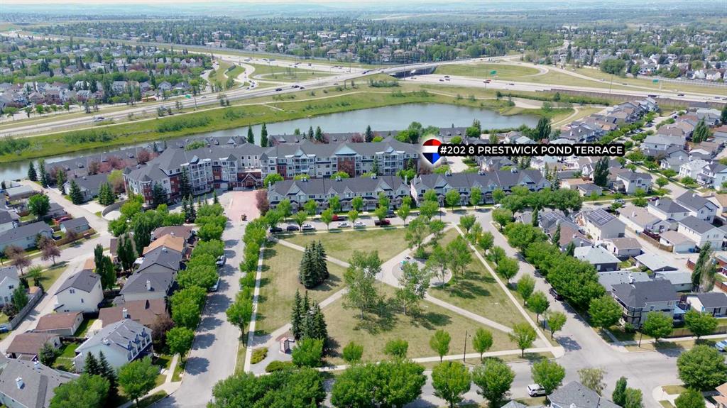 *** Price Improvement *** Stunning 2 bed 2 bath CORNER unit in beautiful McKenzie Towne – Welcome home to 202 - 8 Prestwick Pond Terrace. This unit has been impeccably maintained in the sought-after Caledonia on the Waterfront complex. The open-concept living space welcomes with plenty of natural light and neutral colors. The well-designed kitchen features granite countertops, maple cabinetry & center island with seating overlooking the spacious living area and new luxury vinyl plank flooring. The adjacent dining area is framed by bay windows & offers access to the private outdoor balcony. The primary bedroom is generously sized, featuring a 4-piece ensuite bathroom and a walk-in closet with new carpet. A second bedroom, 3-piece bathroom with walk-in shower, and enclosed laundry complete the space. Additional building amenities include a quiet, pet-friendly complex, secure underground parking, and common living/dining/kitchen/library – perfect for gathering with family & friends. This prime location means you can walk to incredible dining & shopping, minutes to 130th Ave amenities, and easy access throughout the city on nearby Deerfoot & Stoney Trail. Enjoy the beautiful pond right outside, as well as walking and biking on local pathways. Book your viewing today!