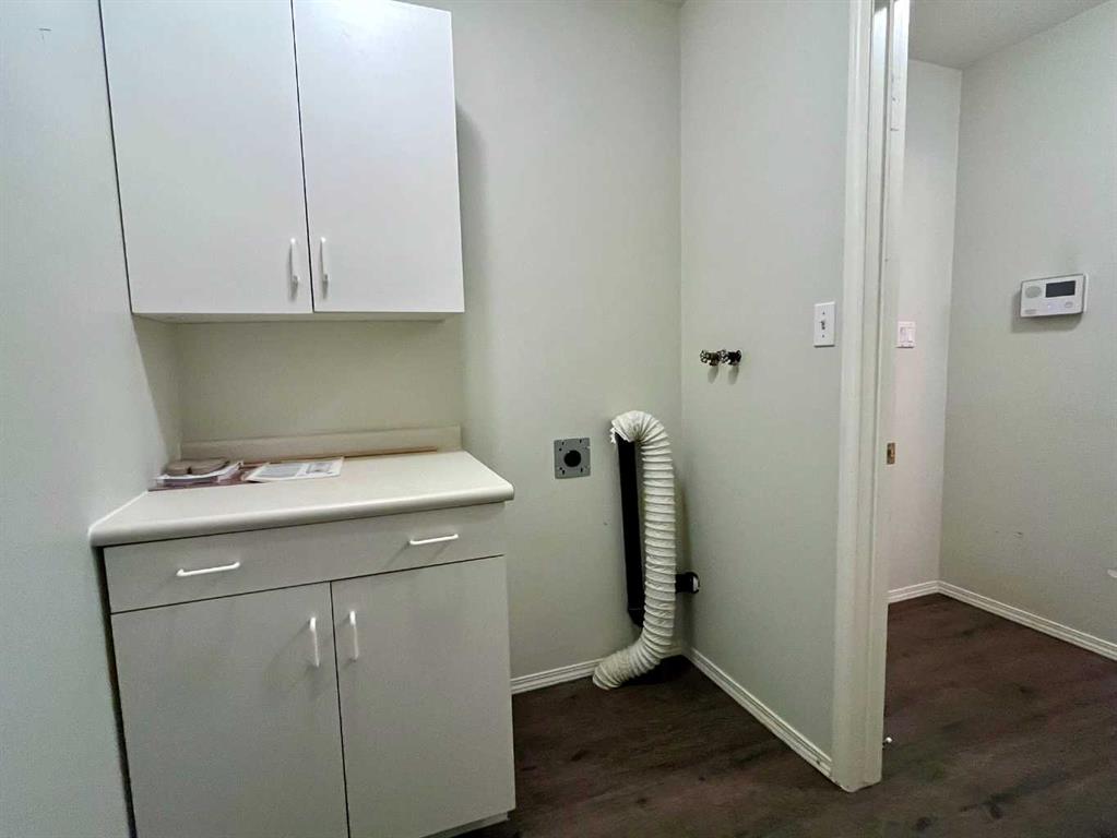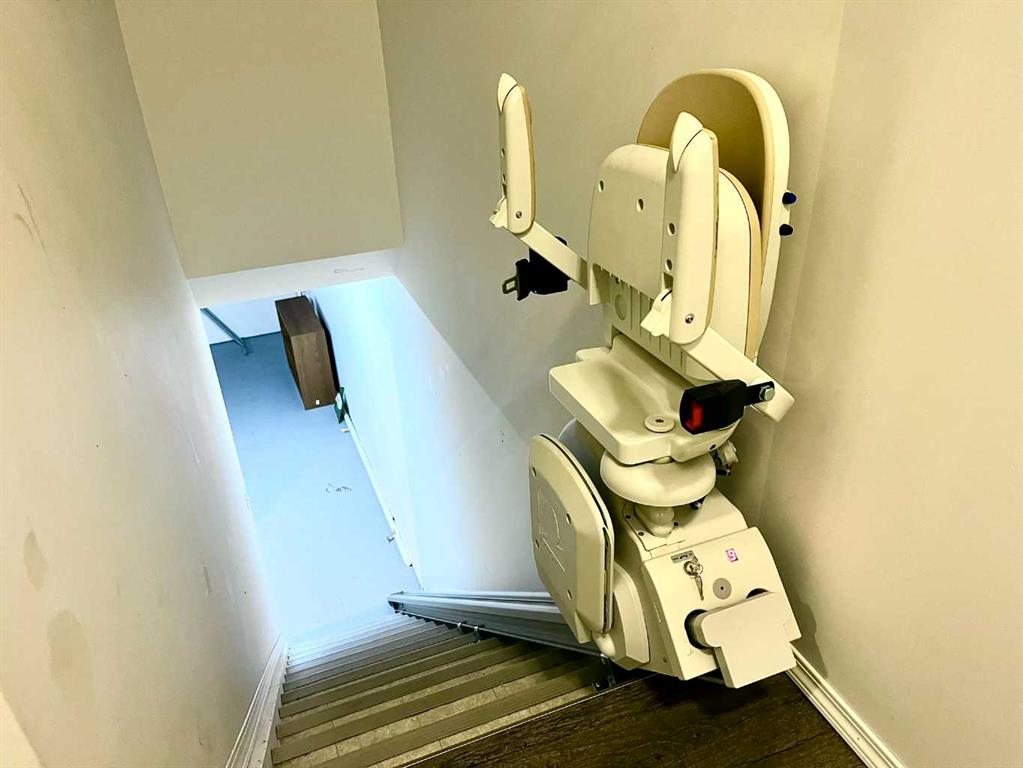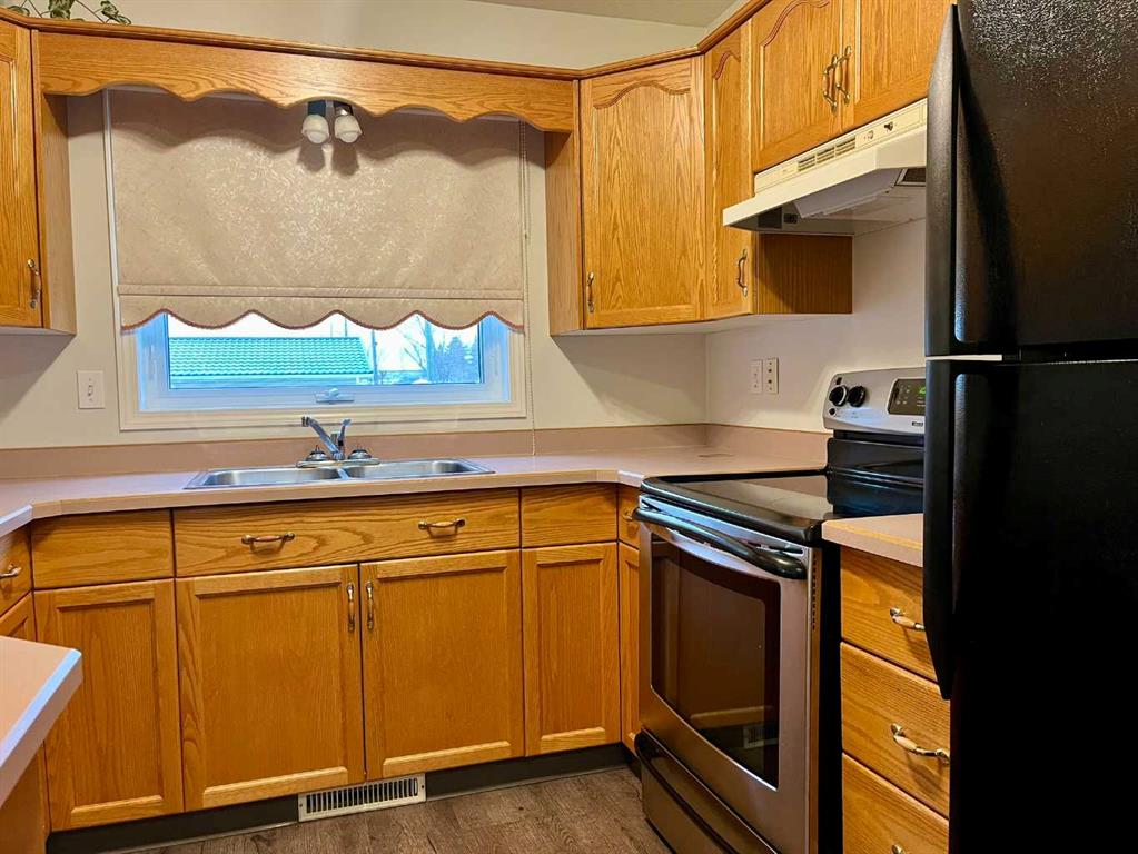 This zero step duplex in Viking is ideally located in the Viking Villas complex where the snow and grass are taken care for you- the perfect place to live if easy living is for you! With 1103 sq ft of main floor space, there is ample room to spread out. An open concept living room and kitchen space lends itself well to entertaining and having friends and family over. Oak cabinetry with a pantry cabinet, a phone desk and u-shaped kitchen design give just the right amount of storage. A generous sized master bedroom with walk-in closet and 3-piece bathroom for your own private oasis. And a second bedroom is great for guests or hobbies! The 4-piece bathroom and laundry complete the main floor. Downstairs, walls and drywall are done and only needs flooring and the ceiling finished! The perfect place for even more storage or lots more living space, with a bathroom already roughed in. An attached single garage to keep the snow off! Your deck off the dining area is enclosed and a fantastic hang out place for nearly any season!! This unit is clean, well maintained and move-in ready. Updates include: Furnace (2023), Air Conditioning (2024), Furnace Humidifier (2025), Stair Lift.