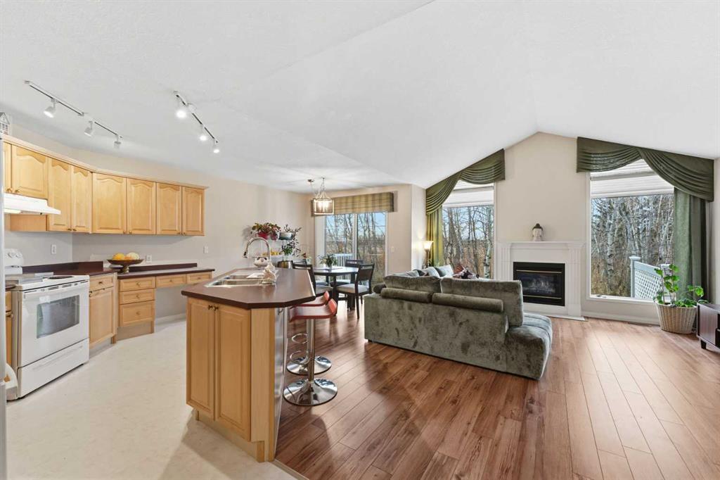 Wonderful opportunity in the peaceful 55-plus community of Prince of Peace Village! This lovely villa-style duplex is all about comfort, calm, and connection with nature. Freshly painted and well maintained, it’s ready for you to move in and start enjoying a relaxed, low-maintenance lifestyle. Step inside and you’ll instantly feel the airy space created by high vaulted ceilings and big sunny windows that frame a beautiful backdrop of mature trees. The open-concept layout allows the kitchen, dining, and living areas to flow together seamlessly, perfect for quiet mornings or friendly get-togethers. The kitchen island is a natural hangout spot, and the cozy gas fireplace adds warmth and charm on chilly days. The main floor has everything you need, including convenient laundry. The primary bedroom feels bright and open with its vaulted ceiling, and the easy-access ensuite shower is a thoughtful touch. There’s also a second bedroom that’s ideal for guests, hobbies, or a home office. Downstairs, the finished lower level gives you plenty of room to spread out, think movie nights, a craft space, or just a comfortable retreat. You’ll also find a third bedroom, a full bath, and generous storage space. Step outside to your west-facing patio, a peaceful place to watch the sunset or spot the occasional deer wandering by. There’s nearby RV parking for those who love to travel south for the winter, just lock up and go without worry! The single attached garage comes with extra storage, and best of all, your condo fees cover lawn care, snow removal, and exterior maintenance, giving you more time to enjoy life. Explore all the walking paths, ponds, gardens, and the many places to sit and relax throughout the Village. Enjoy the amenities of the Clubhouse, take part in community activities, and make the most of the maintenance-free lifestyle that Prince of Peace Village is known for. With quick access to Stoney Trail, Highway 1, and all the shopping and restaurants nearby, this home offers the perfect blend of convenience and tranquility. So if you’re ready to trade weekend chores for easy living, friendly neighbours, and peaceful surroundings, come see this one before it’s gone!