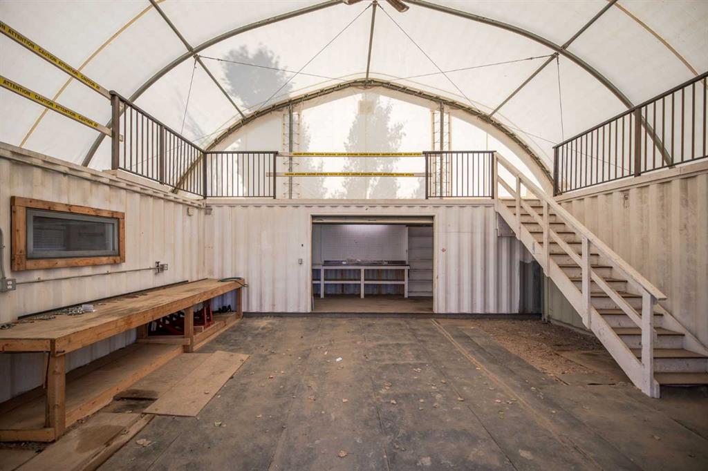 LANDSCAPING COMPANY | ANIMAL SERVICES | CAR SALES | ARTIST STUDIIO | Perfect location for your business needs. The unique property is a 115 m2 lot, with a 1282 sq. ft. two-story office and 1120 sqft of storage(sea can build) work area. The front foyer, kitchen, washroom, and 2 small offices on the second floor make the Quonset the perfect workspace for additional projects: office, open area, and upper level. Basement is also available for extra storage, SOLAR PANEL IS IN PLACE, so minimum to no bill. There is ample parking at the rear of the property. I-G Zoning, please see the MLS documents for the detailed use area. 4+4 Designated parking spots and ample parking area to deal with.