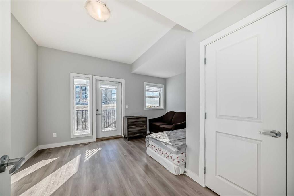 Welcome to this Verona West townhome by Trico Homes known for their built quality. This is the largest size model backing into the ravine, and not directly facing any unit with its lovely balcony in the front. This home has been very well cared for by their owners since day 1. Recreation / family room right on the entry (main) level, with balcony / deck that takes you directly to the breathtaking ravine right behind. This versatile space with a walk-in closet can be easily turned into your 3rd bedroom as well. One level up, you'll find the inviting floor plan with nine foot ceiling. You won't miss the upscale kitchen loaded with stainless steel appliances, elegantly finished cabinets flushed to the top, upgraded range hood and kitchen sink, built in microwave, and a massive ten foot central island - literally the centre piece of this home. Separate dining and living room with their own windows / balcony complete this very functional level, along with a half bath. Elegance continues with upgraded wood railing and metal spindles lining the stairs leading up to your private top floor with laundry, and TWO ENSUITES!!, each with its own full bath with vanity upgraded to comfort height, and walk-in closet. Don't forget, you also have the basement as your additional storage. It is not short of natural sunlight with two big windows. The attached single garage with a full driveway ensures you have space for your parking needs. Landscaping and snow removal are taken care of in this complex, allowing you to spend more time enjoying the convenience and nature around you. Quick access to roadways such as Stoney Trail, Shaganappi Trail, Beddington Trail take you to many parts of Calgary easily. If you prefer commuting on public transport, bus station is a short 7 minutes walk and the bus takes you to Brentwood c-train station in less than 30 minutes. Enjoy walking around the community? You have many reasons to. Besides the ravine that sits right behind your future home, restaurants, bubble tea, and medical clinic etc. are a mere block away. Walmart is just across the street, along with the future Symons valley Centre under development (city library and bus terminal hub). Other upgrades include gas line and air conditioner rough in's, Book an appointment and see this beauty for yourself!