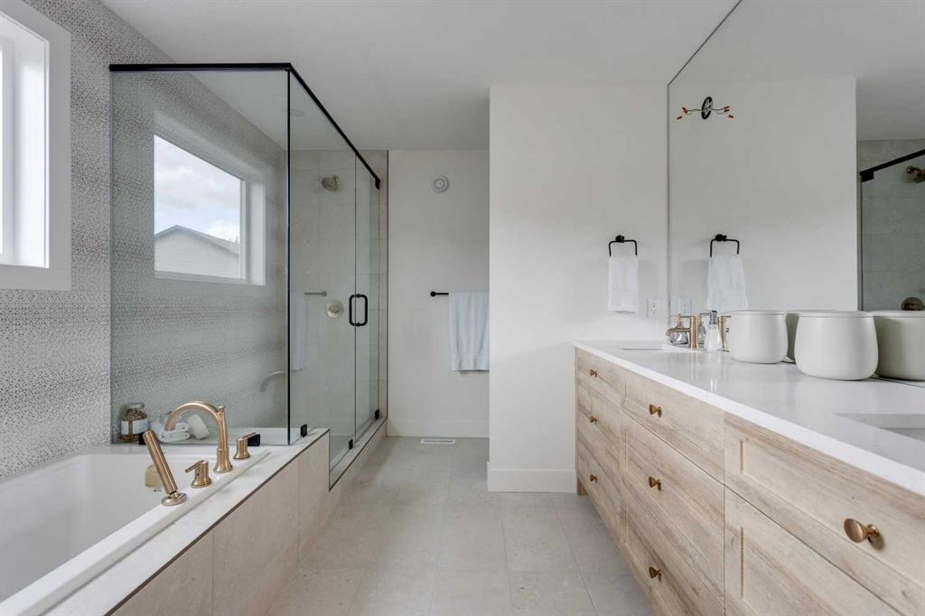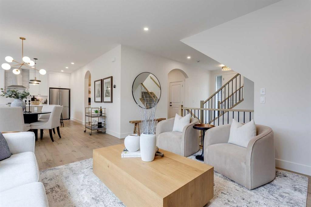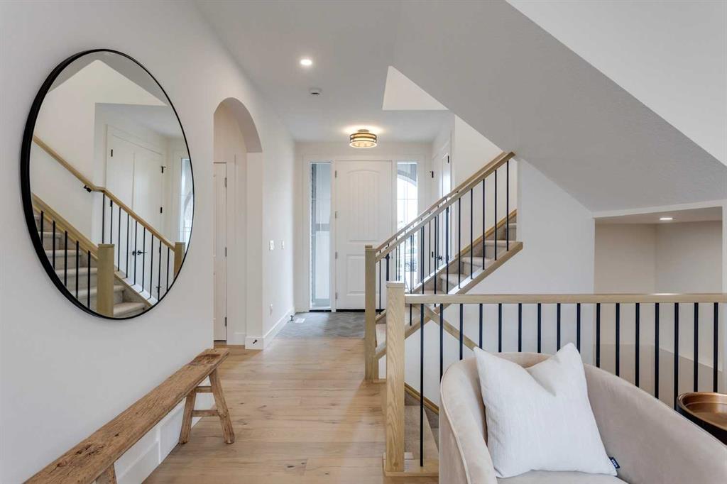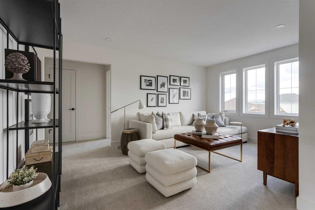 Introducing the “Henry”! Nestled in the foothills of Cochrane, on the doorstep to the majestic Rocky Mountains. 46 Heritage Close, showcases the quality workmanship and attention to detail in both design and finishings of Fifth Avenue Homes. This home offers 2,100 sq ft above grade with potential to develop another 900 sq ft in the walk-out lower level (builder has plans available and can develop for additional cost). The main floor features a great room with a gas fireplace, the open concept is perfect for entertaining and family gatherings. The beautifully designed kitchen is a dream! Custom cabinets, top-of-the-line fixtures, pantry, Quartz counters and table-top island with stool seating. The eating area adjoining the kitchen has room for a full-size dining suite and access to the 14.5'x9' deck with gas BBQ line. There is a front flex room that can be used as an office, den or formal dining room. Completing the main floor: 2 piece bathroom and mud room with access to the double garage. Engineered hardwood, custom tile work and 9’ ceilings throughout the main floor. The upper level is perfectly designed for a large family! The bonus has room for toys, TV or computer desk, laundry room, 2 spacious bedrooms plus the primary suite with a spa-style ensuite and walk-in closet. The home sits on an east exposure, walk-out lot in the popular community of Heritage Hills, close to the park and tot lot. Minutes to the 1A highway west to the mountains or head east for an easy commute to Calgary; close to old town Cochrane with its many shops and restaurants.