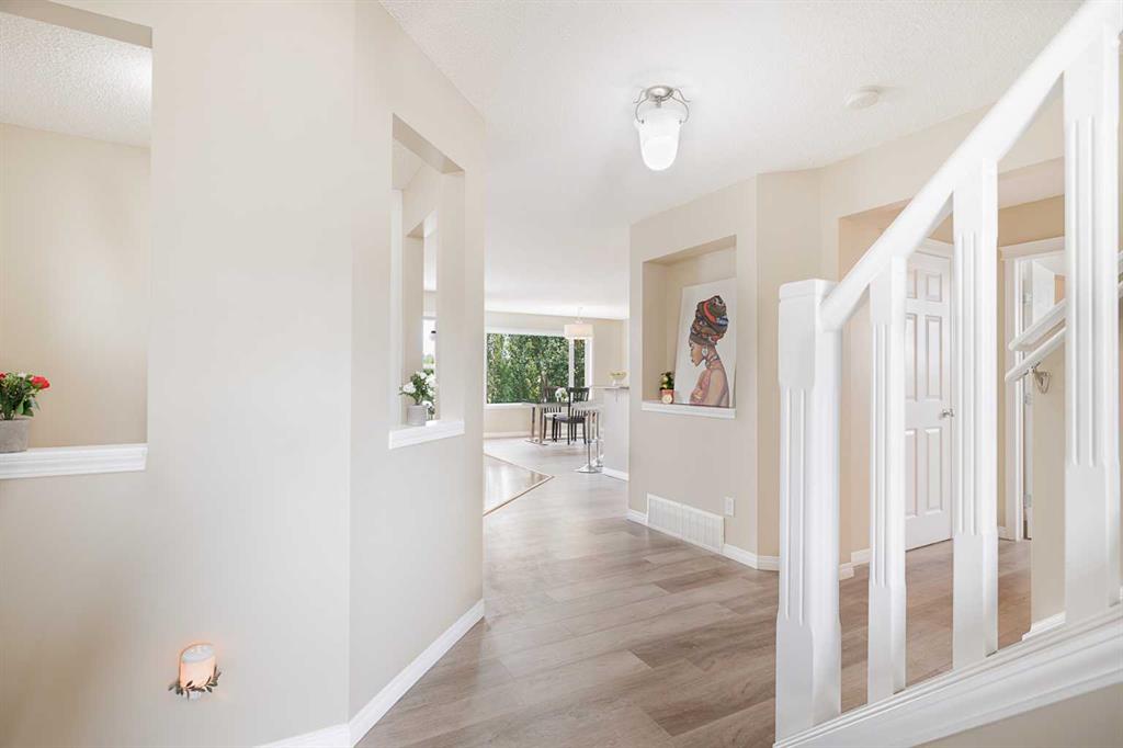 Welcome to this beautiful 5 bedroom, 3.5 bathroom home in the highly desired community of Morningside, perfectly positioned at the end of a quiet cul de sac. This property backs onto the pond and pathway system, offering peaceful views, incredible privacy, and direct access to scenic walking and biking trails right from your backyard. With over 2,800 sq ft of fully developed living space, this home is designed for both comfort and functionality. The main floor features brand new flooring, an open concept layout, and a welcoming living room with a cozy gas fireplace. Large windows along the back of the home bring in an abundance of natural light while showcasing the tranquil pond setting. The spacious kitchen is ideal for cooking and entertaining with granite countertops, stainless steel appliances, a walk through pantry, and plenty of cabinet space. Step out onto the deck to enjoy morning coffee or unwind while taking in the water views and quiet surroundings. Upstairs you will find five generous bedrooms, perfect for large families, guests, or home office needs. The primary bedroom offers relaxing pond views, a four piece ensuite, and a walk in closet. The remaining bedrooms are well sized and share a bright full bathroom. The fully finished basement adds even more living options with a large recreation room, a flexible space for a gym or office, a full bathroom, and a rare walk up basement with a separate entrance. This setup is ideal for extended family, teens or guests. Outside, the fenced yard opens directly onto the pathway network and pond, creating an unbeatable lifestyle setting for walking, running, cycling, or simply enjoying nature. Situated on a corner lot with no neighbors on one side, this home offers outstanding privacy. An oversized driveway provides excellent parking for multiple vehicles. Located just minutes from schools, parks, shopping, and all amenities, this move in ready home combines space, comfort, and one of the best locations in Morningside. A perfect fit for families wanting room to grow while enjoying the rare benefit of backing onto the pond.