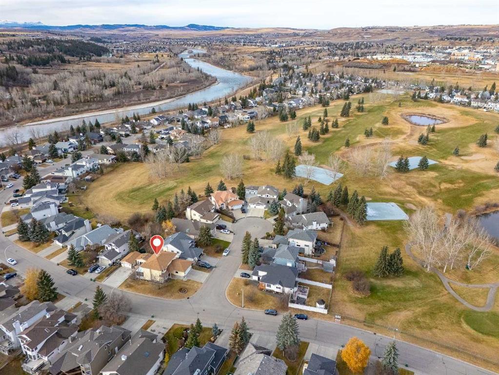 Open house Sunday Dec 9, 11-1pm, A rare offering in the sought-after Town of Cochrane and "In demand" Riverview Community. Lovingly maintained by its original owners this property offers a rare opportunity to purchase a home that has been cared for with exceptional attention over the years. Situated on a quiet cul-de-sac with desirable westerly exposure, it is just a one minute walk to the breath taking "BOW RIVER," providing convenient access to Fishing, Scenic Pathways and Peaceful Nature. For GOLF enthusiasts, "The Cochrane Golf Club" is only steps away, offering an exceptional lifestyle location. Positioned on a large Corner Lot, this provides outstanding parking options-ideal for those needing space for a Trailer, Boat, Multiple Vehicles (9 parking spaces In TOTAL)or Hobby use. Featuring an oversized Heated Single Garage, Plus an Attached Double Garage with In-Floor Heating, creates an excellent flexibility for parking, storage or workshop! Step out back to an exceptional outdoor living retreat designed for year-round enjoyment. The Newer Solarium/Patio is a bright all-season retreat with natural light-perfecto for relaxing, dining, or enjoying garden views throughout the year. Setting the stage as you walk out to the Built in BBQ/Grill, Burner and 2 smoker brick station- Perfect for the grilling Devotee. Wait till you see this impressive Private Gazebo with a Huge Hot Tub, 4 Skylights, sliding doors and earthly cedar walls make this an amazing relaxing escape, ideal for parties and game night. Step inside the front door into a receptive foyer with a stunning high-ceiling accented by a crystal chandelier and an elegant staircase that welcomes you into an open concept living area. The seamless flow connects the Living rm/Dining, Kitchen/Family rm, Laundry/Mud rm creating a cohesive and functional layout perfect for everyday living/entertaining. Cooking will be most pleasurable in the kitchen with plenty of natural light, featuring wood cabinets, granite counter tops, newer SS appliances, walk-in pantry, Island and a sun filled breakfast nook to enjoy your meals in, connected to the patio/sunroom. The Contiguous spacious family room offers a gas fireplace with built in cabinetry, a large picture window making it the perfect place to relax and entertain. The upper level boosts 3 spacious bedrooms. Retreat to the primary suite with breath taking views of the river, forest and Hills, along with a luxurious 5 piece ensuite and an expansive walk in closet. The walk up basement provides a spacious recreational room with wet bar, 2 bed/flex rooms/(whichever suites your needs) In-Floor Heating, ample storage, and a 3 piece bath-again perfect for guests or entertaining. Some windows have been replaced. It is evident this home commands attention making it the ultimate package, LOCATION, SIZE, VIEWS, LOT, WEST BACKYARD, THE BOW RIVER AND GOLF plus all the amenities Cochrane has to offer...Schools, Shopping, Dining and Tranquility. MAKE THIS HOUSE YOUR HOME !!