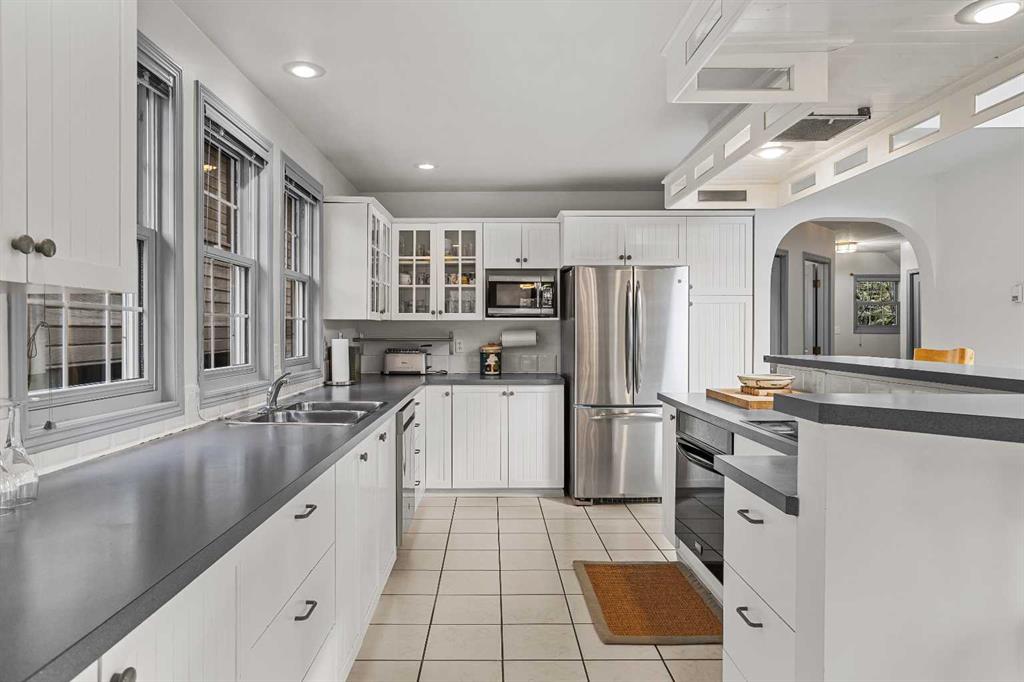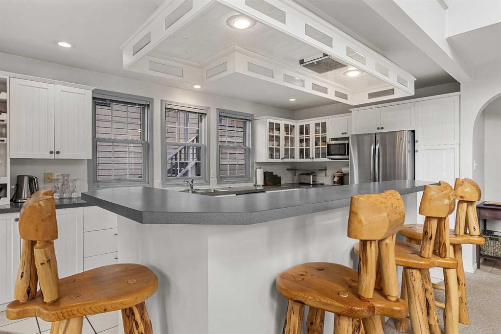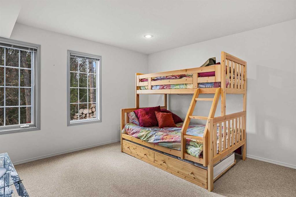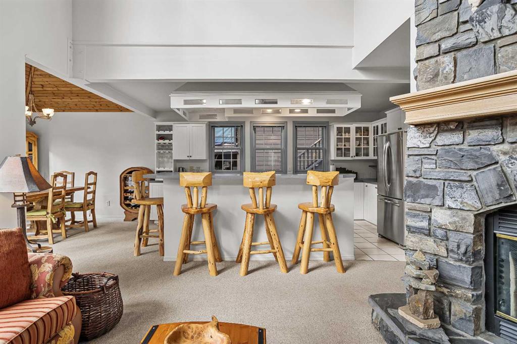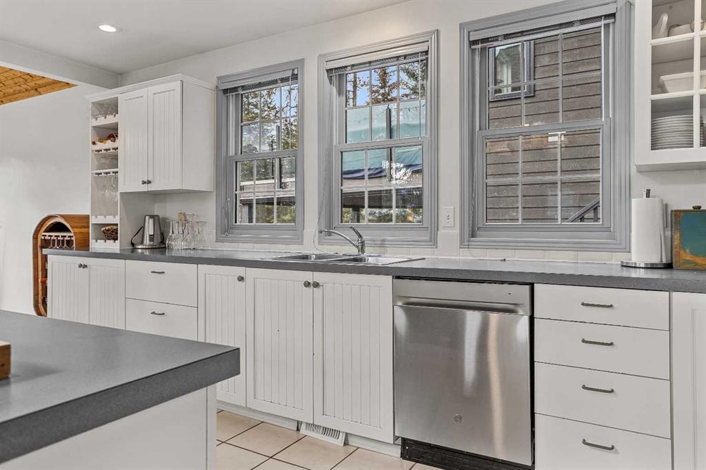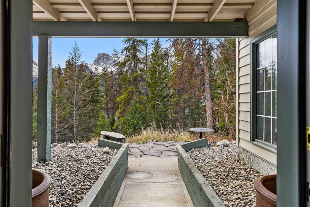 Epic mountain views and timeless character define this stunning 2400 sq ft home, hugged in mountain light with a perfect blend of forest and and south west peak views including 3 Sisters and Lawrence Grassi . The main level welcomes you with a generous foyer and leads into a great room flooded with natural light and a feeling of space with soaring ceilings. A floor-to-ceiling stone fireplace with custom millwork anchors the living area, setting the tone for cozy mountain evenings. The massive kitchen offers an eat-up bar, abundant cabinetry, and a dining area wrapped in windows — the perfect place to gather and take in the views. Upstairs, the primary suite has an ensuite and office nook open to the main level. The walkout level features three additional bedrooms, a large family room, and full bathroom plus access to a tranquil lower patio surrounded by forest. Outdoor living is exceptional with a wrap-around front verandah for sunrise coffee, a sunny back deck for BBQs, and a lower area ready for your own Nordic-style spa — space for a hot tub, cold plunge, and sauna. The yard feels like you’re alone in nature, yet you’re just a short stroll from downtown Canmore’s cafés, trails, and shops. This well-cared-for home is far from cookie-cutter — a true mountain escape that blends thoughtful design, privacy, and that one-of-a-kind feeling of light, calm, and connection to nature only found in the Rockies.