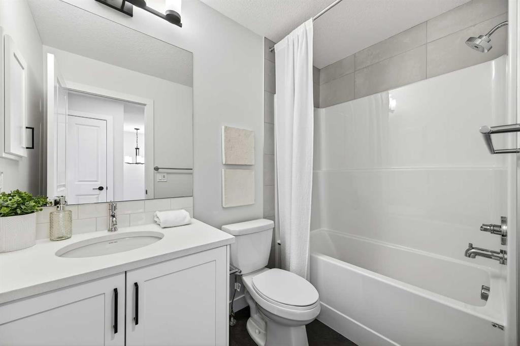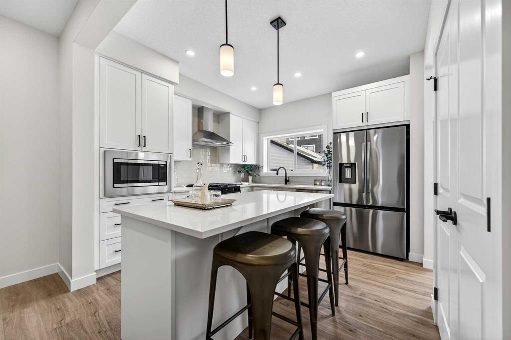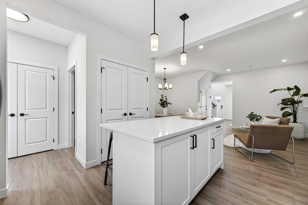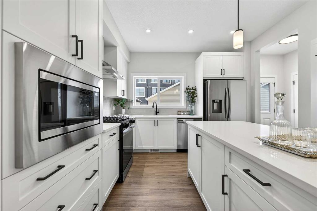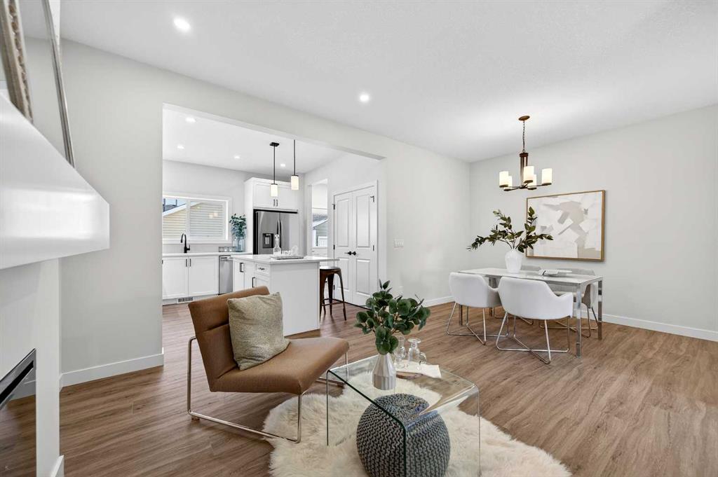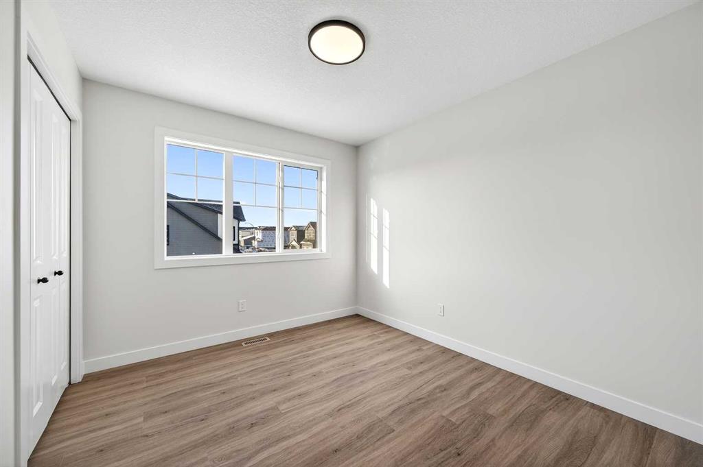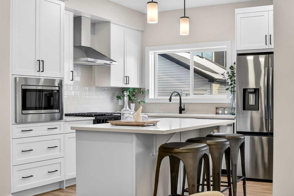 Welcome to The Amber by Genesis Builders, a beautifully designed two-story home offering 1,515 sq. ft. of comfortable living space with an additional unfinished basement with legal basement suite rough-in. The main floor features an open-concept layout with a front flex room, bright great room, and a modern kitchen complete with a central island, quartz countertops, flat-panel cabinetry, and a full stainless steel appliance package. It’s a space that feels inviting and functional, perfect for daily life or entertaining guests. Upstairs, you’ll find three bedrooms, a full bathroom, and a conveniently located laundry area. The spacious primary suite includes a walk-in closet and a private ensuite designed for everyday comfort. This home is equipped with smart-home features including a Ring doorbell, Weiser Smart Code lock, Ecobee thermostat, and Amazon Echo Show. Additional highlights include 9-foot main floor ceilings, upgraded railing, a BBQ gas line, rough-in gas line for the range and a 10' x 10'. The exterior showcases Hardie board siding with Smartboard trim and durable vinyl accents. Located near future parks, pathways, and community amenities, The Amber combines modern design, quality craftsmanship, and lasting value in the heart of Keystone Creek. *Photos are representative and may not reflect the exact finishes of this home. Mood board for colours and selections are in the photos. Rms calculated from builder blueprints provided by the builder. Possession is tentative and scheduled for September 2026.