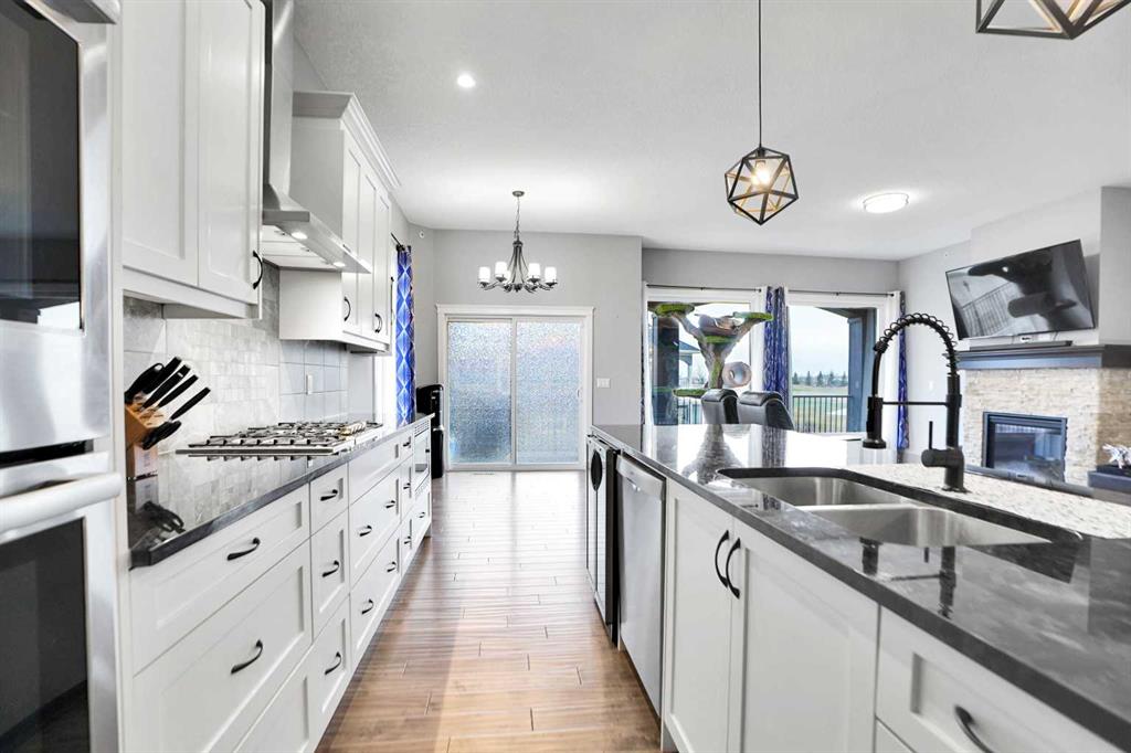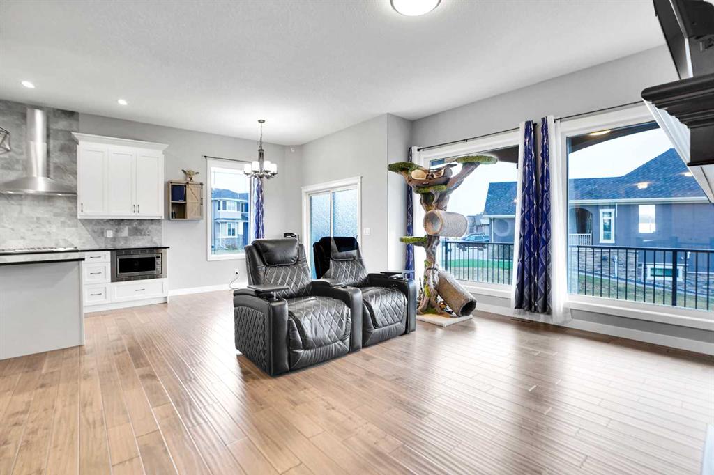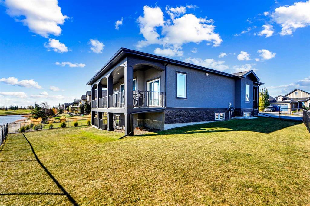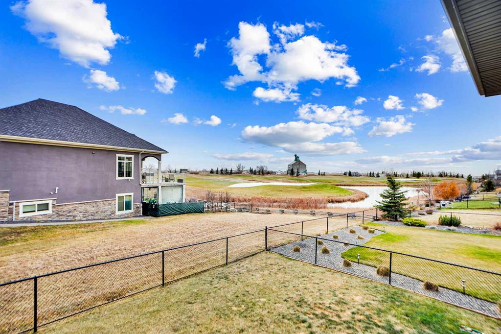 Nestled in the prestigious Lakes of Muirfield community in Lyalta, this exceptional walk-out bungalow delivers 3,773 sq.ft. of beautifully developed living space, paired with an oversized, heated 4-car garage nearing 1,000 sq.ft.—a dream setup for car lovers and hobbyists alike. From the moment you enter, the home impresses with engineered hardwood floors, 8' doors, and an expansive, thoughtfully designed main level that includes a spacious front den and convenient laundry room. The chef’s kitchen is the heart of the home, showcasing a massive eat-up island, granite countertops, stainless steel appliances with double ovens, a gas range, Sub-Zero fridge, corner pantry, and extensive cabinetry. It flows effortlessly into the dining area and out to a private deck overlooking the 10th green—perfect for morning coffee or evening unwinding. The bright living room, anchored by a double-sided fireplace, offers a warm and inviting space for gathering. Just beyond, the primary suite serves as a true retreat sharing the double-sided fireplace, direct deck access, and a spa-inspired 5-piece ensuite featuring dual sinks, a soaker tub, steam shower, and walk-in closet. A versatile second room on the main floor provides endless possibilities—home gym, guest room, or add a wardrobe to create an additional bedroom—supported by a full 4-piece bath and extra storage. The fully developed walk-out basement is an entertainer’s paradise, boasting a massive recreation area, wet bar with a new wine fridge, two oversized soundproofed bedrooms, a stylish 4-piece bath, and abundant storage. Step outside to the covered patio and enjoy a fully fenced corner lot backing onto green space, with views of the Lyalta grain elevator and the 10th green—an ideal setting for sunrise coffees and peaceful evenings. Experience the serenity of country living with starry skies and northern lights, all while being just 15 minutes from Strathmore, Langdon, and Chestermere, and 20 minutes from Calgary’s city limits. This hidden gem blends luxury, space, and tranquility in a thriving golf community.