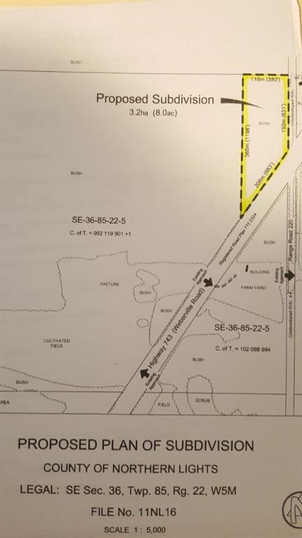 Nicely treed acreage approximately 12.5 miles north on Weberville Road (HWY 743) only minutes from Peace River. Property backs onto grazing lease and is partially fenced. Asking $79,000 plus GST if applicable. Call today for further information and directions to this property.