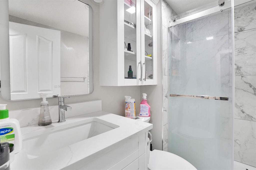 Welcome home to Modern Comfort in Monterey Park NE! Step into this FULLY RENOVATED 2-BEDROOM, 2-BATHROOM, 2-UNDERGROUND TITLED PARKING STALLS- MAIN FLOOR UNIT BACKING onto GREEN SPACE located in the highly desirable community of Monterey Park NE! CONDO FEES INCLUDES ALL UTILITIES! As you enter, you will be greeted by the OPEN CONCEPT layout. Your tastefully RENOVATED KITCHEN showcases QUARTZ COUNTERTOPS with bar seating, PREMIUM CABINETRY, CHIMNEY-STYLE HOOD FAN, MODERN BACKSPLASH, and STAINLESS STEEL APPLIANCES. This open space flows seamlessly into the SPACIOUS DINING ROOM, and LIVING ROOM with the sliding doors to the PATIO with the view of the quiet GREEN SPACE and a GAZEBO-perfect for a morning coffee or a relaxing evening with friends & family! The TWO BEDROOMS are thoughtfully separated for maximum privacy, each offering serene green space views. The PRIMARY BEDROOM features walk-through closets leading into LUXURIOUS ENSUITE complete with QUARTZ VANITY, TILED FLOORS, and a custom WALK-IN SHOWER! The second BATHROOM is conveniently located near the guest bedroom and includes a SOAKER TUB with a SHOWER! The second bathroom is conveniently located near the guest bedroom and includes a SOAKER TUB with SHOWER. A separate WALK-IN laundry area with a MODERN WASHER and DRYER set adds style and convenience. Throughout the unit, enjoy LUXURY VINYL PLANK FLOORING that ties the entire home together in warmth and elegance. The unit is just steps away from a shopping plaza containing bank, McDonalds, Co-op, Pizza, Drs, dollar store and much more! —this property offers true convenience. Easy access to 16th Avenue from 68 street to Stoney Trail, and Deerfoot Trail makes commuting simple in any direction! All UTILITIES INCLUDED in your condo fees! making this a rare gem combining luxury, location, and lifestyle. Welcome home!