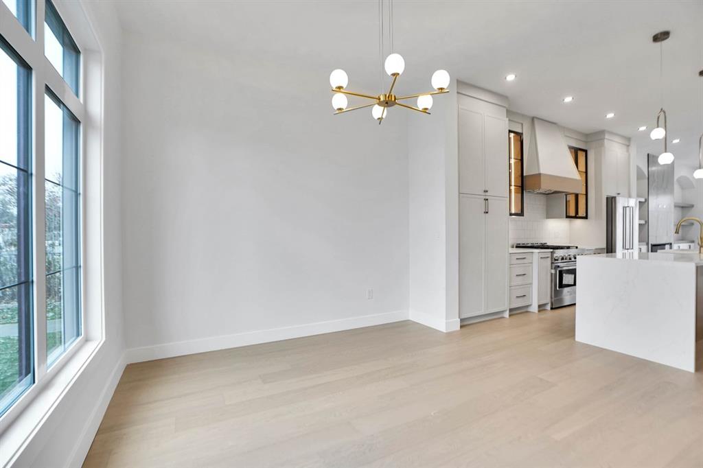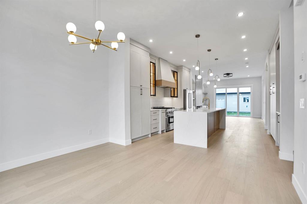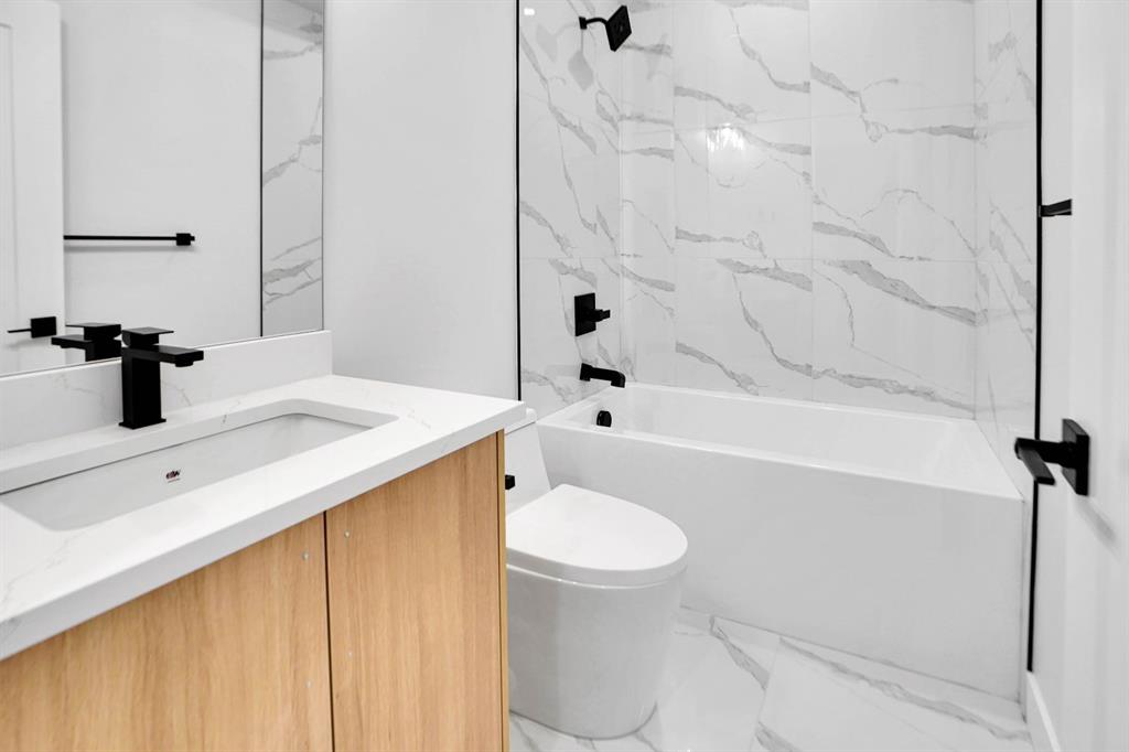 Brand-New Luxury Infill in Bowness | Legal 2-Bedroom Suite | South Backyard Luxury + Income Potential + Lifestyle – All in One Home. Move right in to this stunning, never-lived-in luxury infill featuring a bright open floor plan, designer finishes, and a legal 2-bedroom basement suite for rental income or multigenerational living. Enjoy a chef-inspired kitchen with quartz countertops, warm wood accents, premium stainless steel appliances, and a show-stopping waterfall island. The living room boasts a modern fireplace with custom built-ins and opens to a sunny south-facing backyard – perfect for entertaining. Upstairs, a spa-like primary suite with walk-in closet, dual sinks, freestanding tub, and glass custom shower, plus two additional bedrooms and full bath. The bright basement suite offers its own kitchen, laundry, private entrance, and full bath – ideal for guests or tenants. Prime location near Bow River pathways, Bowmont Park, Market Mall, Winsport, schools, and quick highway access to the mountains.
