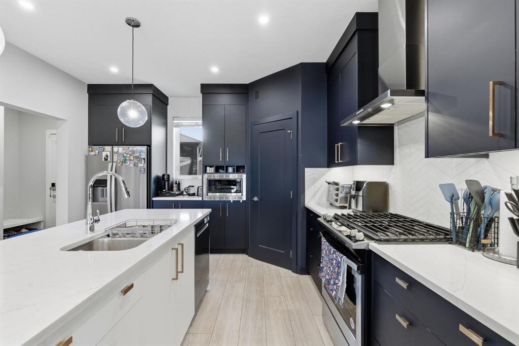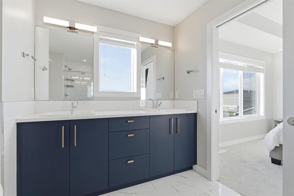 Welcome to your dream home in the sought-after community of Chelsea, Chestermere. This stunning property offers the perfect blend of modern design and everyday comfort with an inviting open-concept main floor featuring a bright living room, spacious dining area, and upgraded kitchen with quartz countertops and elegant finishes. A convenient powder room and access to a large deck make this level ideal for both family living and entertaining guests. Upstairs, the primary bedroom serves as a private retreat with a luxurious 5-piece ensuite and walk-in closet, along with two additional bedrooms, a full bathroom, and upper-level laundry for added convenience. Enjoy outdoor living in the beautifully landscaped and fully fenced backyard with a large deck and plenty of space for gatherings. The double detached garage features doors on both sides, creating a versatile area perfect for summer entertaining or extra parking. Located close to schools, parks, shopping, and Chestermere Lake, this home truly offers the perfect combination of style, comfort, and location.