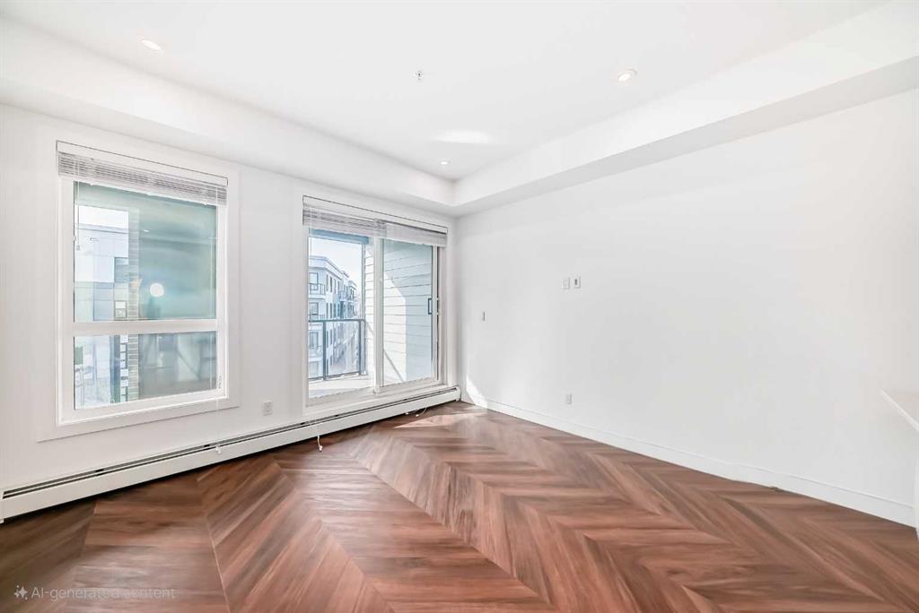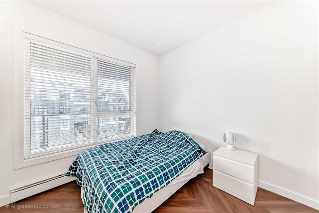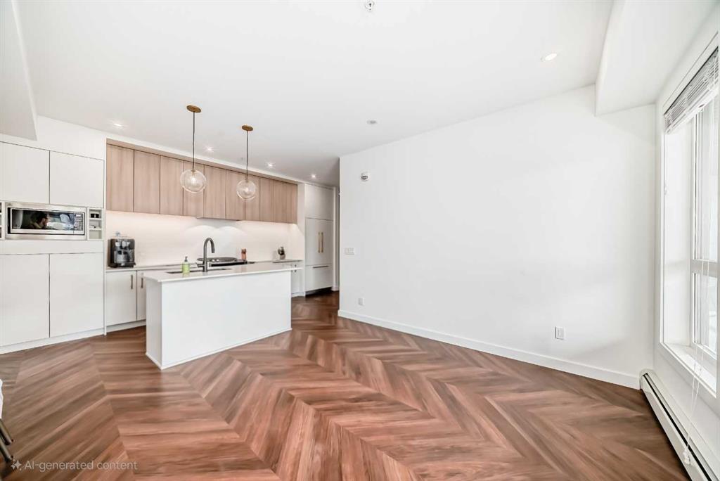 Welcome to this luxurious top-floor 3-bedroom, 2-bath residence in Esquire, one of Calgary’s most sought-after developments in the vibrant University District. Offering over 950 sq. ft. of elegant living space, this home combines contemporary sophistication with everyday functionality. The chef-inspired kitchen is a true highlight, featuring ceiling-height cabinetry, quartz countertops, a gas range, tile backsplash, and a large island with bar seating—perfect for entertaining or casual dining. The open-concept layout flows seamlessly into the bright living and dining areas, adorned with herringbone-pattern luxury vinyl plank flooring and expansive windows that fill the space with natural light. Step out onto your private balcony to enjoy serene views and the perfect setting for morning coffee or evening relaxation. The primary suite offers a generous walk-in closet and a spa-like 4-piece ensuite with dual vanities and a glass-enclosed shower. Two additional bedrooms and a second full bath provide flexibility for family, guests, or a home office setup. Additional conveniences include in-suite laundry and titled underground parking for year-round comfort. Residents of Esquire enjoy exclusive access to premium amenities including a fully equipped fitness centre, pet wash station, and bike maintenance area. Perfectly located, you’re steps away from shops, restaurants, coffee spots, grocery stores, and parks, with the University of Calgary, Foothills Medical Centre, and Market Mall just minutes away. Experience elevated urban living in one of Calgary’s most dynamic communities — book your private showing today!