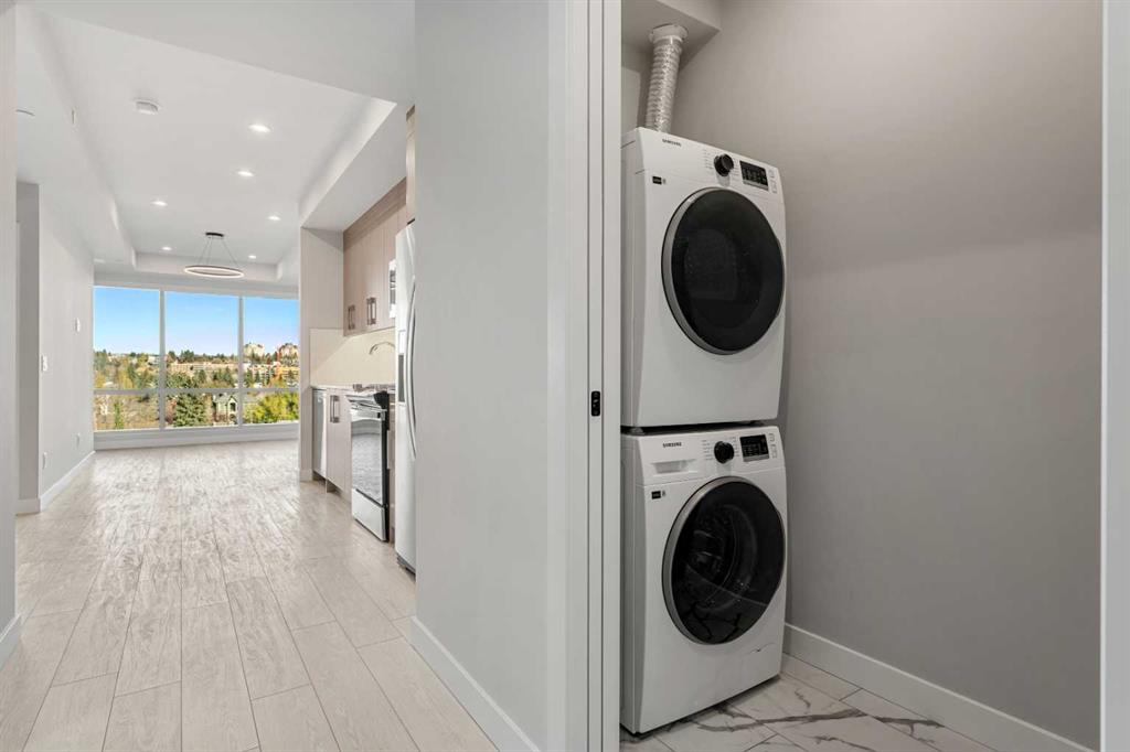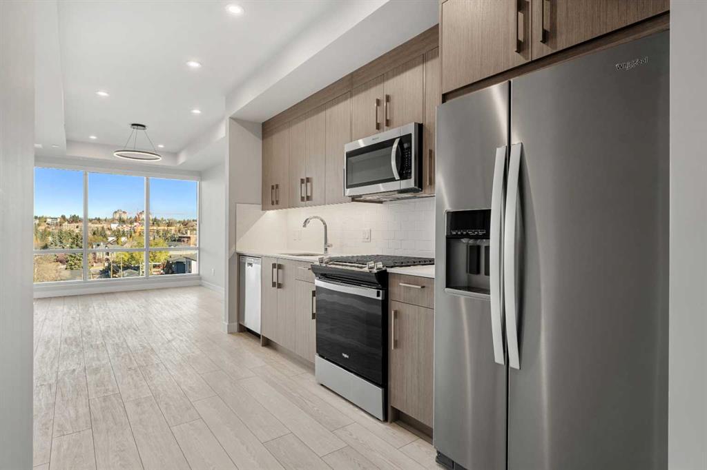 Welcome to Frontier by Truman Homes, where modern design meets one of Calgary’s most desirable inner-city communities — West Hillhurst. Perfectly situated steps from shops, cafes, parks, and the Bow River pathway, this 2-bedroom, 1-bath condo offers a vibrant urban lifestyle with a touch of tranquility. Inside, you’ll find 9-ft ceilings, a chef-inspired kitchen featuring a gas stove and oven, built-in hood fan microwave, stainless steel refrigerator, and a sleek, open-concept layout perfect for entertaining or relaxing. Large windows fill the space with natural light, creating a bright and welcoming atmosphere. This home includes one titled underground parking stall, a storage locker, and access to exceptional building amenities — including a fully equipped fitness centre and a shared office/workspace, all conveniently covered by the condo fees. Living in West Hillhurst means enjoying quick access to Kensington Village, Foothills Hospital, the University of Calgary, and Downtown Calgary — all within minutes. Take a stroll along the Bow River, explore local boutique shops and restaurants, or bike into the core — this location truly offers the best of city living. Stylish, convenient, and ideally located — this Frontier condo is your opportunity to experience the West Hillhurst lifestyle at its best.
