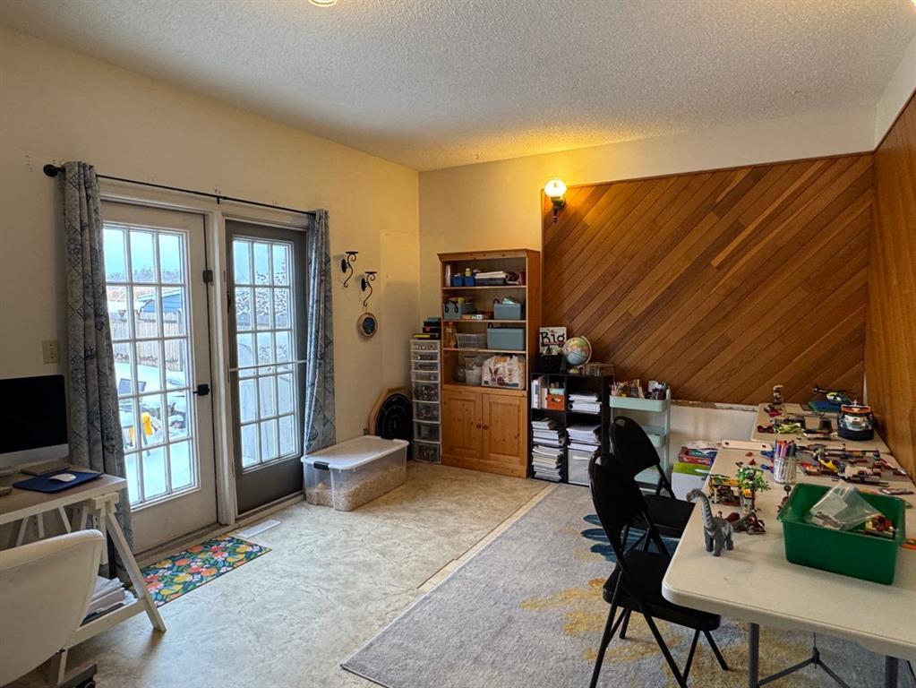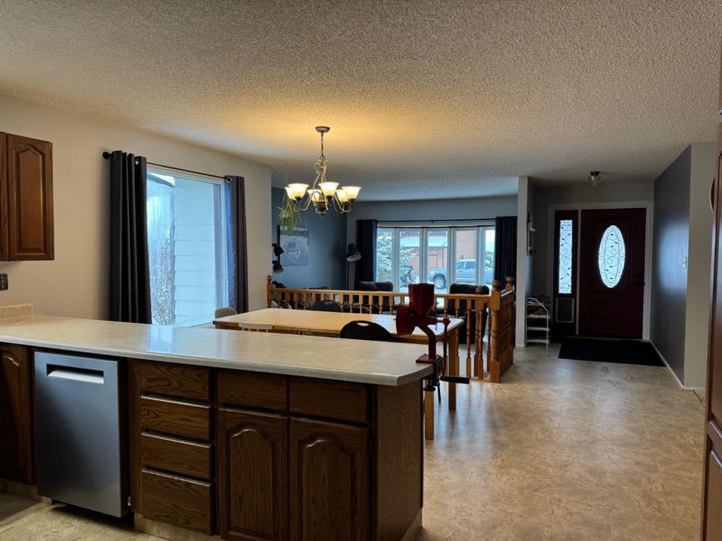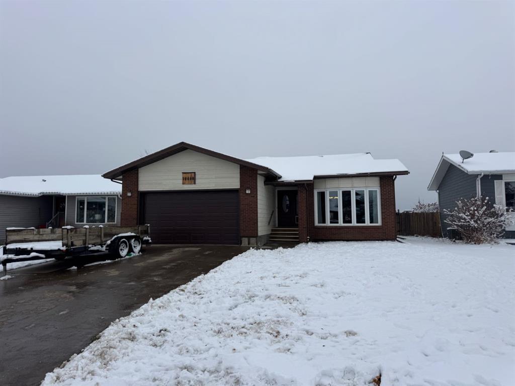 Welcome to this 1560 SQFT 4+ bedroom, 2 bath bungalow in a desirable family neighborhood! This spacious, well-maintained home offers a bright open-concept main floor with a modern kitchen featuring stainless steel appliances, generous dining area, and a cozy sunken living room with a large bow window. The primary bedroom includes a 3-piece ensuite and walk-in closet, plus two additional bedrooms and an office/hobby room. The basement is almost competed with large family room, another bedroom, laundry with cabinetry, and extra storage. (just needs flooring) Enjoy the fenced backyard with fire pit, shed, and direct playground access! Updates include new shingles, garage door/opener, appliances, flooring, paint, sealed glass units, hot water tank, and fencing. Features central vac and 24x21 double attached garage. Move-in ready family home with space, comfort, and great curb appeal!