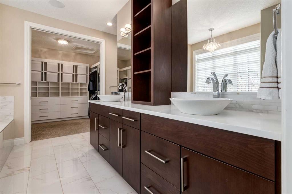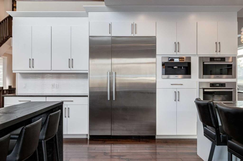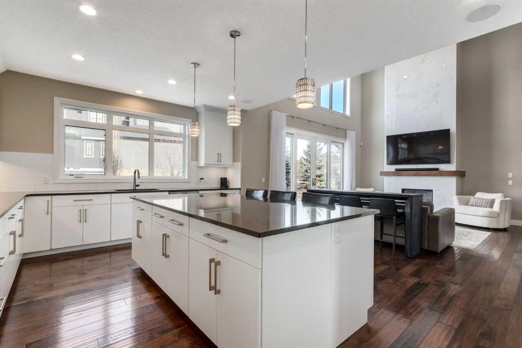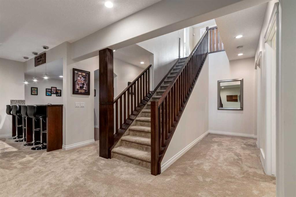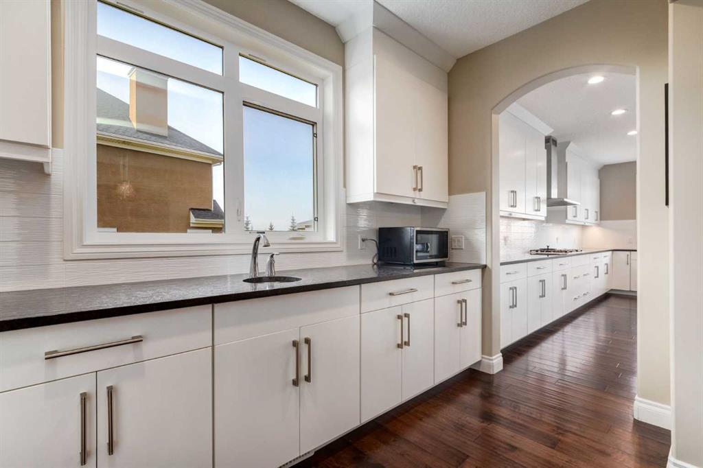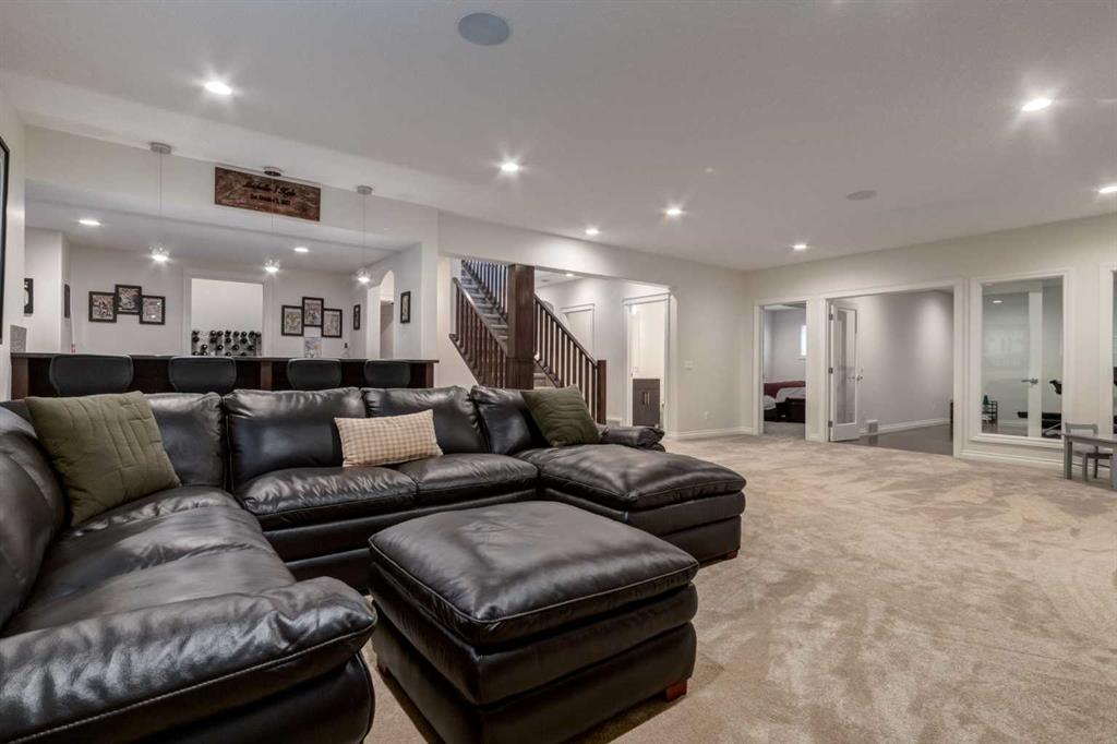 Discover unparalleled craftsmanship and modern elegance in this custom built, 6-bedroom, 6-bathroom home, perfectly positioned on a beautifully landscaped corner lot in the prestigious Watermark at Bearspaw community. Designed for luxury living, this remarkable home offers over 5,200 sq.ft. of impeccably finished space across three levels. Step inside and be greeted by 10’ ceilings and an open-concept layout that seamlessly blends comfort and sophistication. The great room is a show piece, featuring a striking floor-to-ceiling tile gas fireplace beneath soaring vaulted ceilings, the perfect setting for gathering and entertaining. The chef-inspired kitchen is a true culinary masterpiece with premium Miele appliances, including a 5-burner gas cooktop, double wall & steam ovens, built-in espresso maker, oversized refrigerator and dishwasher. An expansive quartz island with seating and built-in ceiling speakers make this the heart of the home. A formal dining room with custom quartz serving counter and cabinetry adds both function and flair, while the main-floor primary suite offers a private retreat complete with a spa-inspired ensuite featuring a deep soaker tub, dual vanities with a central tower, and a fully tiled shower with rain and wall heads plus a bench. The spacious walk-in closet is beautifully designed with custom built-ins and ample storage. The main level is complete with a bright front office, a mudroom with built-in lockers for everyday ease, and a convenient main-floor laundry room with generous storage and workspace. Upstairs, a lofted open-to-below bonus area provides a serene space for reading or relaxing. Three generous bedrooms include one with a private ensuite and two share a 5 piece bath, plus a second laundry room for convenience. The fully developed lower level has been beautifully updated with new carpet, paint, and baseboards. Designed for entertainment, this impressive space features a spacious recreation area complete with a full wet bar, wine cellar, and gym, along with a flex room that can serve as a fifth bedroom or media/theatre room, fully wired for surround sound. A sixth bedroom with a private ensuite provides an ideal retreat for guests or extended family. Enjoy outdoor living on the extended 33’ deck with a gas line for BBQ, overlooking your professionally landscaped yard enhanced by over $40,000 in trees, shrubs and rod iron fence. The heated triple garage (36’ x 26’) provides ample space for vehicles and storage. Additional upgrades include a new electrical panel, new hot water tank (2022), new spray foam attic insulation, central A/C, and built-in speakers wired for whole-home entertainment. Experience the best of Watermark at Bearspaw, a serene estate community minutes from Calgary, with scenic paths, waterfalls, and parks. Your piece of paradise awaits! OPEN HOUSE SUNDAY, FEBRUARY 15, FROM 1-4PM.