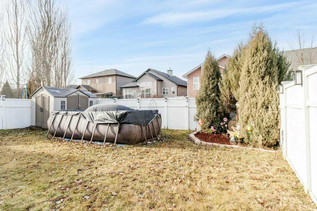 Welcome to 20 Oakfield Close, a stunning and luxurious two-story home tucked away on a quiet close in the desired subdivision of Oriole Park West. Ideally located near a park, playground, École Oriole Park elementary school as well as some of the best walking trails in the City along Maskepetoon Park. Step inside the spacious front entrance and you are greeted by elegant stained-glass, high ceilings, and beautiful hardwood floors that flow throughout the main level. The spacious kitchen features rich cabinetry, plenty of counterspace, large island with granite counter top, walk-in corner pantry and finished off with a high end appliance package. The kitchen area opens seamlessly to the dining and living areas—perfect for entertaining or family gatherings. The beautiful dining space is surrounded by oversized windows and exposed brick, leading to a gazebo overlooking the private yard. Upstairs offers a bonus room plus three generous bedrooms, including a primary suite with a spa-like ensuite and large walk-in closet. The fully finished basement includes a spacious recreation room, a fourth bedroom with a charming barn door, full bath, and ample storage. Enjoy your outdoor oasis with a pool and water fountain which backs onto a green belt/walking path . Additional features include central A/C, some electric blinds, rough-in for underfloor heat, and an attached double garage. A true blend of luxury and warmth—this immaculate home in Oriole Park West offers the best of Red Deer living.