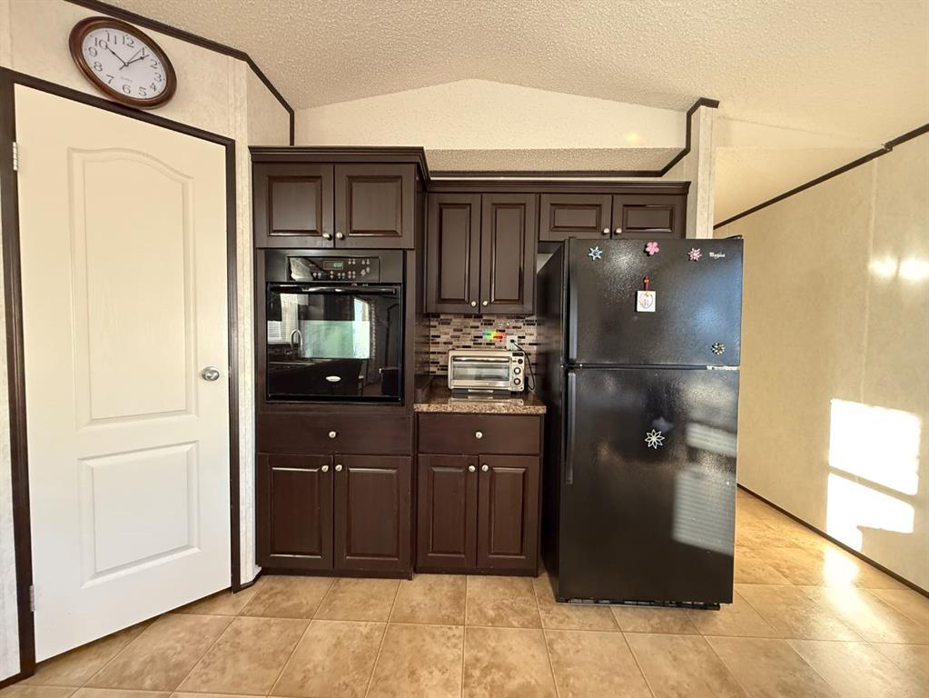 Located in Eastview Estates Park, this well-maintained 16x76 three-bedroom mobile home presents a fantastic turn-key opportunity, available for purchase with a lot lease or to be moved. Step inside to discover a home that blends comfort and clever upgrades. The primary bedroom features a private ensuite with a standalone shower, a custom-built linen shelf, and the luxury of a walk-in closet. The heart of the home is the open-concept kitchen and dining area, highlighted by vaulted ceilings that create an airy atmosphere. The kitchen has stylish dark wood cabinets complemented by a monochromatic backsplash and is equipped with black appliances, a brand new stainless steel tap, and a unique layout featuring a central island and a chest-height wall stove with a separate cooktop. A creative touch repurposes laundry room cabinets into a practical breakfast bar in the dining room. The spacious living room is filled with natural light and offers a peaceful view of the deck through a large window. Outside is a generous 10x46 deck, complete with a ramp and fresh staining, while privacy screening on the west end ensures secluded relaxation. This meticulously maintained property includes crucial recent updates such as new skirting and a new belly installed in 2022, complete with heating tape and revamped water lines for ultimate peace of mind. Call, text or email today to book your viewing appointment.