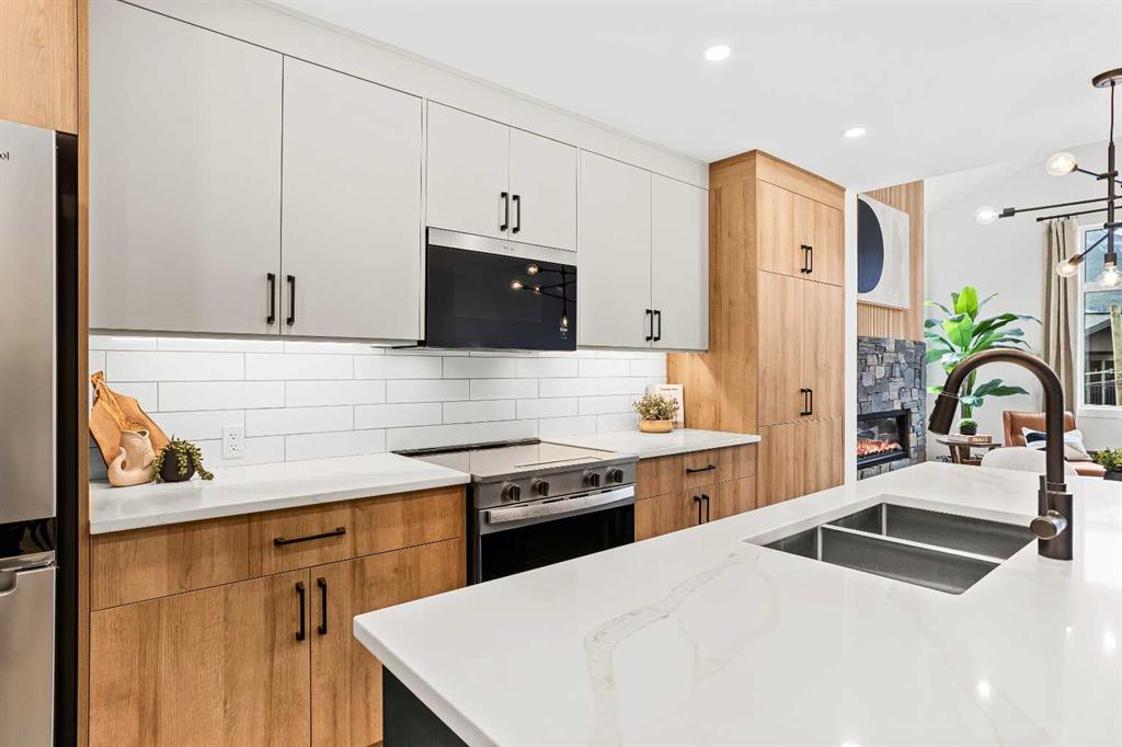 Unit 105 – The Point on Mountain Avenue Welcome to a home designed for mountain living—sun-filled, stylish, and built for real life in the Rockies. This beautifully crafted 3-bedroom, 4-bathroom residence offers over 2,300 sq. ft. of inspired living space, framed by west-facing views of the Rundle Range that glow at sunset and brighten every room. An open, vaulted living area sets the tone with a striking Rundle-stone fireplace, perfect for cozy evenings after a day on the trails. The spacious kitchen invites gathering and connection, complete with generous prep space and a dedicated coffee/wine bar to elevate mornings and unwind at night. Thoughtful touches are everywhere: a large single garage for gear and adventure-ready storage, a huge laundry room, and Built Green Certification for year-round comfort and efficiency. The versatile lower level expands how you live—ideal as a family hangout, private guest room, or work-from-home retreat—complete with a wet bar and separate entrance for true flexibility. With residential zoning and the lowest price per square foot of any new construction in Canmore, this home delivers unbeatable value in a quiet, sought-after neighbourhood just minutes from trails, cafés, and the charm of downtown. Spacious, modern, and mountain-ready—Unit 105 is where lifestyle meets smart investment. List price includes GST.