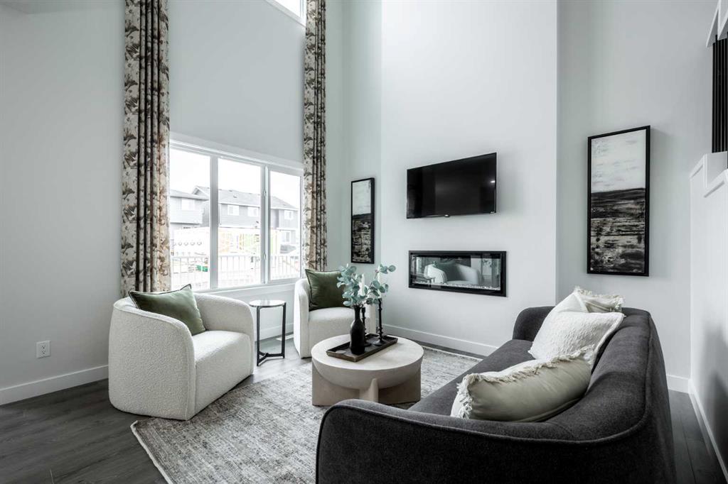 Your new home awaits in one of Cochrane’s most sought-after communities, Heartland! With its tree-lined streets, mountain views, parks, pathways, and naturalized amenities, this neighborhood truly has it all. Step inside the Otis-24, offering over 2,000 sq. ft. of thoughtfully designed living space. This stunning open-to-below model with elegant railing is built with your growing family in mind. The home features 3 bedrooms, 2.5 bathrooms, and a spacious primary suite complete with an expansive walk-in closet and a luxurious 5-piece ensuite featuring a double vanity, soaker tub, and separate shower. The main floor offers bright, open living areas with 9-foot ceilings, quartz countertops throughout, a den/office space and an electric fireplace that adds warmth and style. The home also includes a separate rear entrance and a back deck with aluminum railings, perfect for outdoor relaxation or entertaining. **PLEASE NOTE** PICTURES ARE OF SHOW HOME; ACTUAL HOME, PLANS, FIXTURES, AND FINISHES MAY VARY AND ARE SUBJECT TO AVAILABILITY/CHANGES WITHOUT NOTICE** MOVE IN BEFORE SPRING!