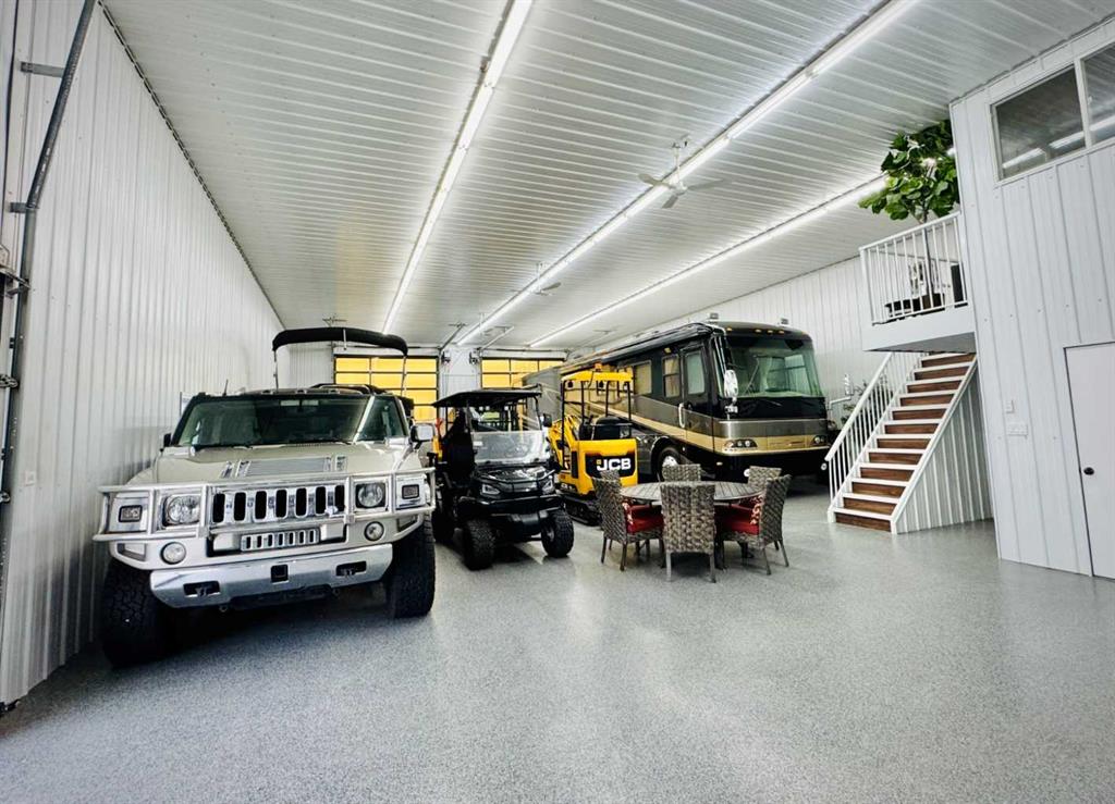 A rare opportunity where luxury living meets limitless potential. Located in one of Didsbury's most unique residential–industrial cul-de-sacs. This executive home and fully equipped shop offer a lifestyle that is almost impossible to replicate. From the moment you arrive, the dual iron gates, stamped concrete driveway, and meticulously landscaped grounds set the tone. The property feels like a private retreat, complete with an irrigation system, low-maintenance rock landscaping, a custom river feature with waterfalls, in-water lighting, a pond, walk-over bridges, mature trees, sitting areas, and streetlamp lighting that creates an incredible evening ambiance. The covered deck with stone archways adds a courtyard feel - ideal for hosting family, friends, or business guests. Inside the residence, a grand floor-to-ceiling fireplace anchors the great room, which flows into a chef’s kitchen with granite counters, stainless steel appliances, a pull-out pantry, four-seat eating bar, and adjoining dining area. The main floor also features a home office with gas fireplace, laundry room, 3-piece bath, and a dedicated hot tub/sauna room. Upstairs, the primary suite offers a private sitting area with fireplace, access to the upper deck, a large walk-in closet, and a spa-inspired ensuite with soaker tub and tiled shower. A second bedroom, full bath, wet bar, family room with gas fireplace, and a dramatic open-to-below catwalk complete the upper level. The home includes in-floor heating on both levels, instant hot water, and air conditioning. The heated shop is a dream for business owners, hobbyists, or vehicle enthusiasts, featuring in-floor heat, new oversized overhead doors, new professional floor coating, LED lighting, 300-amp power, RV hookups, washroom, storage rooms, utility room, and mezzanine office. Ample parking and turnaround areas allow for equipment, RV, or fleet storage. Live in comfort with space for your business and toys, or explore multiple income possibilities: bed and breakfast, storage facility, microbrewery, automotive/custom shop, oilfield services, or private event venue (subject to approvals). Quick access to QEII Highway adds convenience and value. This property must be seen in person to be fully appreciated. Call today for a private viewing.