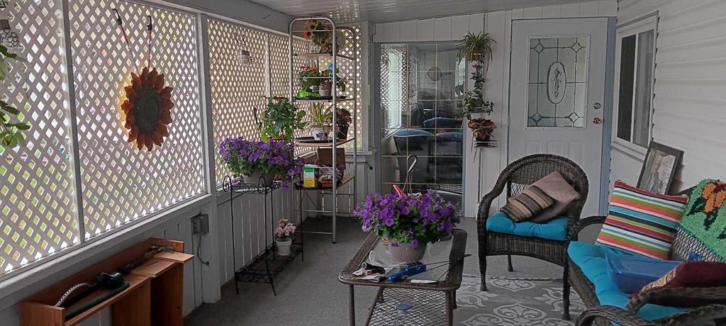 Located in a vibrant active adult community, this meticulously maintained 1120 sq ft home offers 3 bedrooms and 2 updated bathrooms featuring high-rise toilets and fresh flooring throughout the hall, office/bedroom, bedroom, and bath. The spacious living room is enhanced by a cozy gas fireplace and an extra window for added natural light. Enjoy a newer kitchen and pantry, upgraded mechanicals including furnace, hot water tank, air conditioning, and a 2018 sump pump. Most of the home is drywalled, adding to its polished feel. Outdoor living is a dream with a huge covered deck, enclosed sunroom, indoor shed, and newly landscaped yard with a patio behind the detached 14' x 20' garage, complete with remote opener. This move-in-ready gem blends comfort, convenience, and thoughtful upgrades throughout. Buyer must be approved by Parkbridge Estates management.