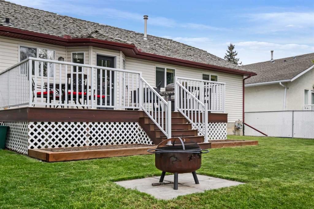 Welcome to the sought-after community of Strathmore Lakes. This immaculately kept bungalow is tucked away on a quiet street and offers just over 2,500 sq ft of developed living space. With 5 bedrooms and 3 bathrooms, it’s the perfect home for families or retirees seeking comfort and space. The open-concept layout features a bright, updated kitchen with modern finishes and direct access to a composite deck—ideal for summer BBQs and outdoor entertaining. The main floor also includes a spacious living and dining area. The primary suite offers a large walk-in closet and a private 3-piece ensuite, providing a quiet retreat. Two additional bedrooms and a renovated 4-piece bathroom complete the main level. Downstairs, you’ll find a generous family room, two more bedrooms, another 4-piece bathroom, and plenty of storage throughout. The south-facing backyard is beautiful and fully landscaped, featuring low-maintenance composite decking, a powered shed, and direct access to a back lane—offering both privacy and convenience. Central A/C keeps the home cool during warm summer days. The double garage has been freshly painted and includes built-in storage. Meticulously maintained and clearly cared for, this home shows true pride of ownership. Located close to parks and within walking distance to two elementary schools, it offers comfort, convenience, and lasting value. This home has everything you need to enjoy the best of small-town living with all the amenities. Take the next step toward making this beautiful home yours—schedule a viewing today!