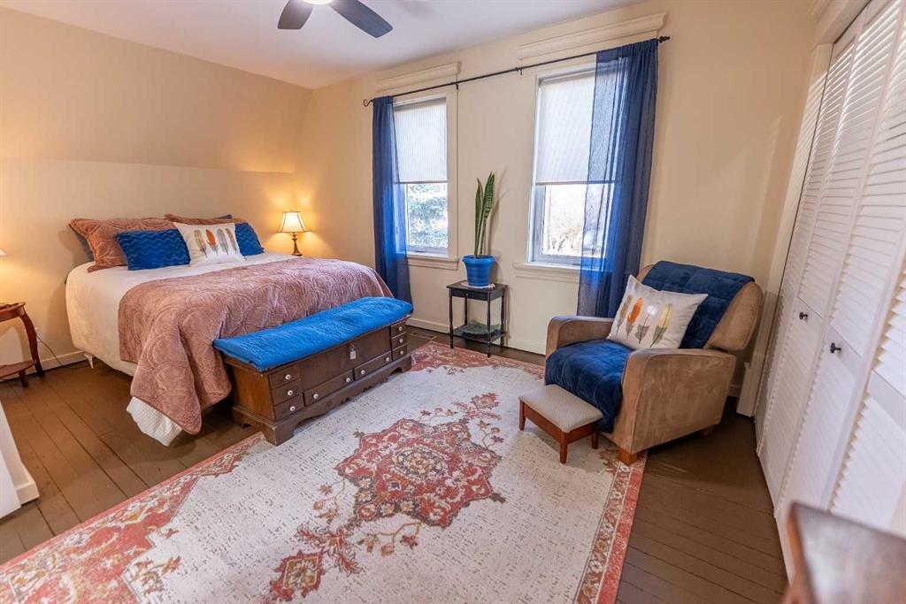 **Heritage Charm Meets Modern Luxury** Discover this one-of-a-kind, arched barn-style home—a true piece of history! Thoughtfully upgraded for today's discerning buyer. Perfectly situated; you'll enjoy stunning west-facing views from your open dining room. Sophisticated Main Floor Living! Step up to the inviting front porch and into a home where historic character blends seamlessly with sleek, modern design. • Designer Kitchen: The heart of the home features a large peninsula, abundant counter space, and a mix of classic and contemporary elements: Dual dishwasher drawers, clear front display cabinets and open shelving plus a unique, original brick chimney feature. • Dining & Relaxation: The sunny, west-facing dining room is perfect for entertaining. Your favorite retreat will be the year-round back sunroom, boasting heated floors, two bright skylights, and patio doors leading to your private deck and backyard. • Convenience: The main floor is completed with a half bath and a dedicated laundry room area Luxurious Upper Level Retreat! Ascend the stairs to find three lovely bedrooms and a spectacular newly renovated spa-like bathroom. Featuring a large, walk-in shower and soaking tub with custom tilework, this is a luxurious escape at the end of the day. Outdoor Oasis & Storage! The property features a mature, beautifully maintained yard and exceptional parking/storage with a massive 24'3" x 26'3" garage complete with 13' ceilings and newly added HEATER! Key Upgrades: Enjoy peace of mind with significant upgrades, including BRAND NEW high-efficiency furnace (January 2026) and newly upgraded windows (except for LR). New shingles in 2019, New Fridge and Stove 2025. There are more improvements you can add to this beautiful home to increase its value. This is more than a house; it's a unique and exceptional home waiting for its next owner to cherish it. Don't miss the chance to own this architectural gem! It's a great home isn't it! Shouldn't it be yours?
