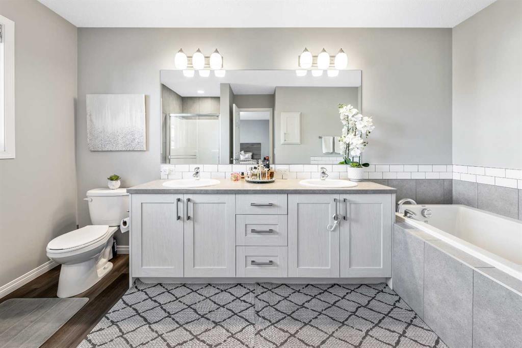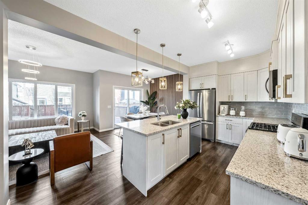 Discover this beautifully designed, Built Green Certified family home offering over 2,460 sq. ft. of fully finished living space with 4 bedrooms and 3.5 bathrooms. Step inside the spacious foyer and be greeted by luxury vinyl plank flooring flowing throughout the main level. The chef-inspired kitchen showcases white Shaker-style cabinetry, quartz countertops, a center island with undermount sink and pendant lighting, and stainless steel Energy Star appliances — including a gas range and fridge with water line. The open-concept layout connects seamlessly to the bright living and dining areas, featuring large windows, a cozy fireplace, and access to a huge extended deck — perfect for summer barbecues or relaxing with friends. A convenient 2-piece powder room completes the main floor. Upstairs, you’ll find three spacious bedrooms, including a stunning primary suite with a walk-in closet and a luxurious 5-piece ensuite featuring dual sinks, a soaker tub, and a separate shower. A bonus room anchors the upper level — ideal for family movie nights or quiet evenings in — along with a laundry area and an additional 4-piece bath. The fully finished lower level expands your living space with a family room, fourth bedroom, full bathroom, and plenty of storage. Additional highlights include 9’ ceilings on both the main and lower levels, central A/C, central vac with kitchen dustpan, triple-pane low-E windows, solar panel rough-in, heat recovery ventilator, and a high-efficiency HVAC system — all designed for maximum comfort and energy savings. The garage is EV-ready with a 240V line already installed, so all you need to bring is your charger! Located close to schools, parks, walking and biking paths, and shopping, this home truly checks every box. Don’t miss your chance to make it yours — schedule your viewing today!