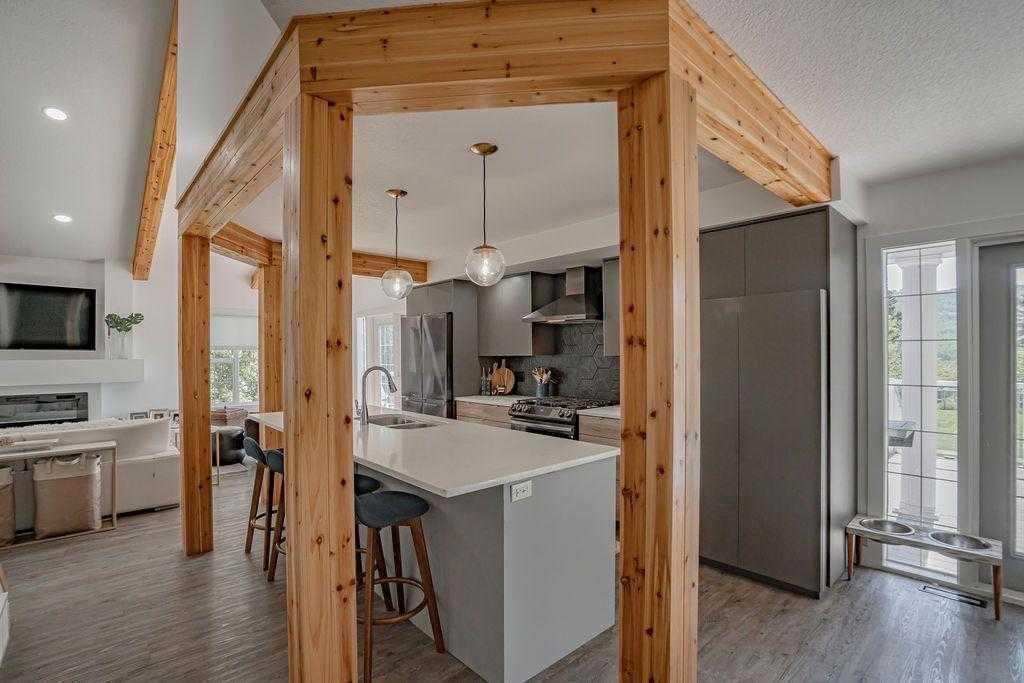 Everyone deserves to come home to a place thats straight out of a magazine.This riverfront property has been renovated from top to bottom, with new stylish kitchen, living room, new electric gas fireplace, new vinyl flooring, doors, vanities, trim, fixtures, front door, garage door/lift, windows and hardwares. You will find 3 beautifully styled bedrooms with 1 den down in the basement. There are 2 full bathrooms and 1 half bath on the main level. I absolutely love the kitchen which features beautiful black stainless appliances, gas stove, quartz countertops, under mount sink, soft closed cabinets and a breakfast bar. They have installed a wall pantry for additional storage which is tucked away in the large dining room. Living room showcases vaulted ceilings with lots of windows allowing the sun shine through all morning long! With all those windows we have you covered from the summer heat with the central air. Master bedroom features 2 of my favourite spots, the balcony and the soaker tub in the ensuite that overlook the river! Basement is fully developed with space to make a 4th bedroom, but for now its a great media room with a den. Finished and heated attached garage with large concrete driveway and rv parking. This home is situated on a .35 acre of a lot that backs directly onto the Peace River, but it has an amazing set up in the backyard for people who really utilize their yards. We have a nice fire pit area set up with a gazebo, garden shed and a large composite deck. There is a mature trees and space to add a garden. The yard is fully fenced and landscaped with irrigation. This home has had the shingles replaced. Call for more information on this property.