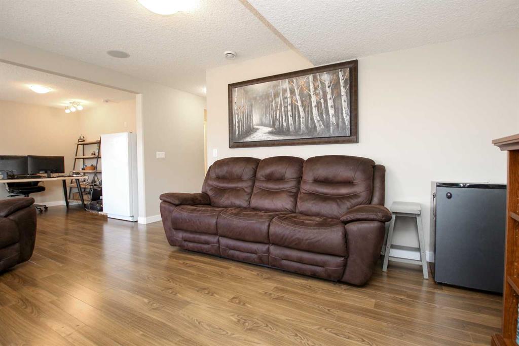 FULLY DEVELOPED 5 BEDROOM, 3 BATHROOM MODIFIED BI-LEVEL ~ WALKOUT BASEMENT ~ BACKING ONTO A WALKING PATH & POND ~ SEPARATE SIDE ENTRY ~ Covered front veranda leads to a welcoming foyer with high ceilings ~ The open concept main living space is complemented by soaring vaulted ceilings and large windows that fill the space with natural light and have views of the natural space just behind ~ The kitchen offers a functional layout with plenty of dark stained cabinets, full tile backsplash, tons of granite counter space including a massive island with pendant lights above, and a walk in pantry ~ Easily host large gatherings in the dining space that's surrounded by floor to ceiling windows, and garden door access to the sunny west facing deck with more great views ~ The spacious living room features a cozy gas fireplace with stacked stone surround, mantle and space for your TV above ~ 2 main floor bedrooms are both a generous size with ample closet space ~ 4 piece main bathroom has an oversized vanity and a linen closet ~ The private primary suite is tucked away on it's own level and features soaring vaulted ceilings, a spa like ensuite with a soaker tub and separate walk in shower, a large walk in closet, and additional storage space ~ Lower level mud room just off the garage has large windows and offers a second, separate entry on the side of the house with access to the basement with conveniently located laundry and a large storage just at the bottom of the stairs ~ The fully finished basement features high ceilings, large above grade windows, built in speakers and operational in floor heat and two laundry hook ups~ Large L-shaped family room with plumbing roughed in for a wet bar has plenty space for a media area and games tables ~ Garden door from the family room walks out to a covered concrete patio with wiring for a hot tub ~ Two basement bedrooms are located adjacent to a 4 piece bathroom and linen closet ~ 25' L x 24' W double attached garage is insulated, finished with painted drywall, has built in shelving, two overhead doors and a man door leading to the front yard ~ The backyard is landscaped, has a fire pit, garden shed, and is fully fenced with direct access to the walking trails and natural reserve just behind ~ Easy access to parks, playgrounds, schools, and shopping ~ Pride of ownership is evident in this well cared for home!