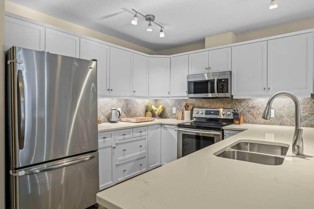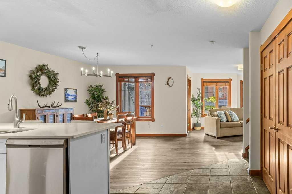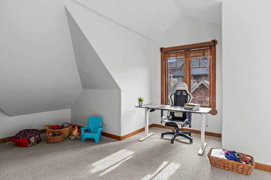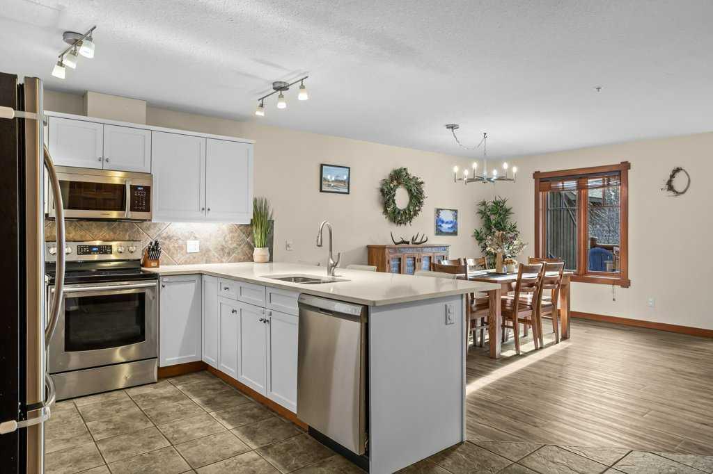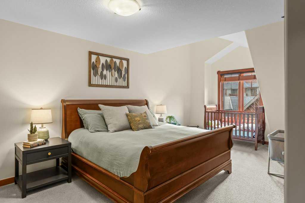 Direct views of the iconic Three Sisters mountains from every SW facing window from this top floor penthouse! Enjoy the expansive 1,348 sq.ft. living space spread across multiple levels, providing privacy and comfort for families or entertaining guests. The large kitchen / dining / living area is larger than most apartment or townhouse style properties in Canmore at the affordable end of the market creating a great place to relax and enjoy your time with others. There have been thoughtful and bright upgrades to the flooring, quartz kitchen counter top, and cabinets throughout giving it a warm mountain feel with a modern touch. The 2 large bedrooms upstairs have attractive ceiling lines, solid wood doors throughout and versatile layouts that allow for extra furniture like a sofa, work station, kids play area etc… The SW facing aspect towards the Three Sisters has the advantage of being very quiet compared to the NE aspect which has loud highway & train noise, especially with the windows open in the summer. A popular feature are the 2 titled parking stalls that come with the unit and a storage locker located at the end of the indoor parking stall. Crossbow has one of the best clubhouses in any building in Canmore with features you will not find elsewhere including: 2 hot tubs (one indoor and one outdoor), dry sauna, a sizable and well equipped gym, 2 pool tables, a ping pong table and lounge area / library. The Three Sisters area is a gateway to endless activities, including direct access to an extensive network of forest trails, from leisurely strolls along the Bow River Pathway to challenging scrambles up Ha Ling Peak. Explore the Three Sisters Pathway, enjoy kayaking or paddle boarding on Quarry Lake, disc golf, or cross-country skiing at the Canmore Nordic Centre. Crossbow is ideally located just a few steps away from the Bow River where you can catch the evening sun setting over Rundle Mountain or try your hand at fishing just out your door. The Three Sisters community is growing, with future plans for retail, office, and restaurant spaces at "The Gateway," including an IGA grocery store. Canmore's charming downtown is just a short drive or bike ride away.