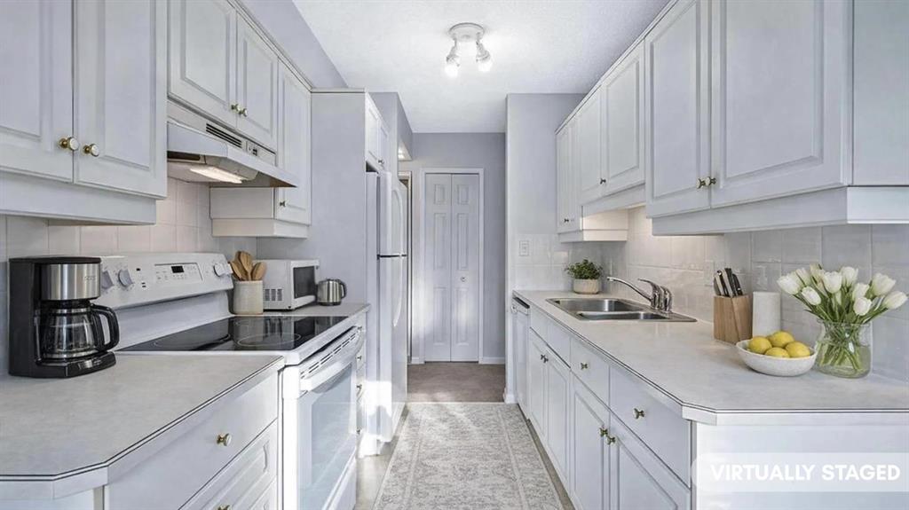 Welcome to this SPACIOUS 2BDRM unit with white kitchen in ACADIA MANOR! One step inside and you will see the difference … it is larger than most in the complex and is also brighter as it is a corner unit with ample natural light from morning til night. This ground floor unit is easy to access, is within easy walking distance to the Acadia Recreation Complex, National Tennis Centre and Ecole de la Source, and with excellent access to transit, bus routes, and C-Train connections. There is one assigned parking stall, extra parking space available for rent for just $10/month through the condo board, ample visitor parking, and bike storage in shed for residents. Shared laundry room with two sets of washer/dryer is just down the hall from unit (free to use not coin operated). And low condo fees cover everything except for electricity. If you’re looking for an affordable unit with great neighbours in an awesome community, then this is it!
