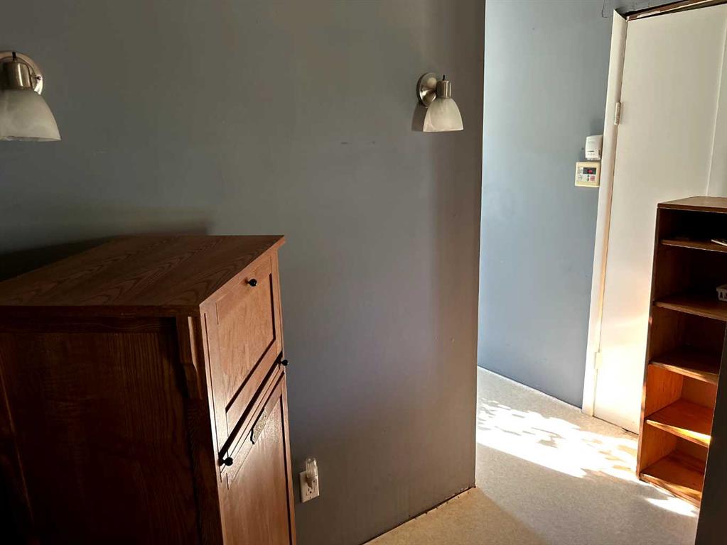 Cozy home on a corner lot with multiple sheds and a double detached garage, this 710 sq ft single bedroom with a newer window, along with an upgraded four piece bathroom, upgraded kitchen, main floor washer and dryer and has a comfortable living room with newer front window. A set of patio doors off the laundry area goes onto a deck that is surrounded by a windbreak to the west and north side. The interior has had some laminate flooring laid, but will need the rest of the house done. The outside is needing a good paint job, along with the sheds and garage. There is a partial basement that has a newer HE furnace and a newer on demand hot water system. There is a small cold porch to the east side . Shingles were done in approximate 2013 on the house.