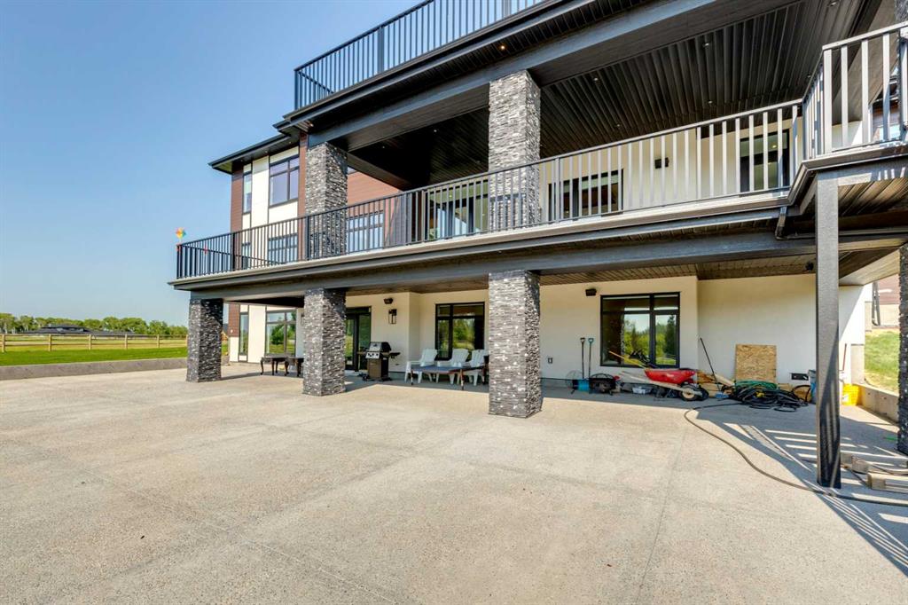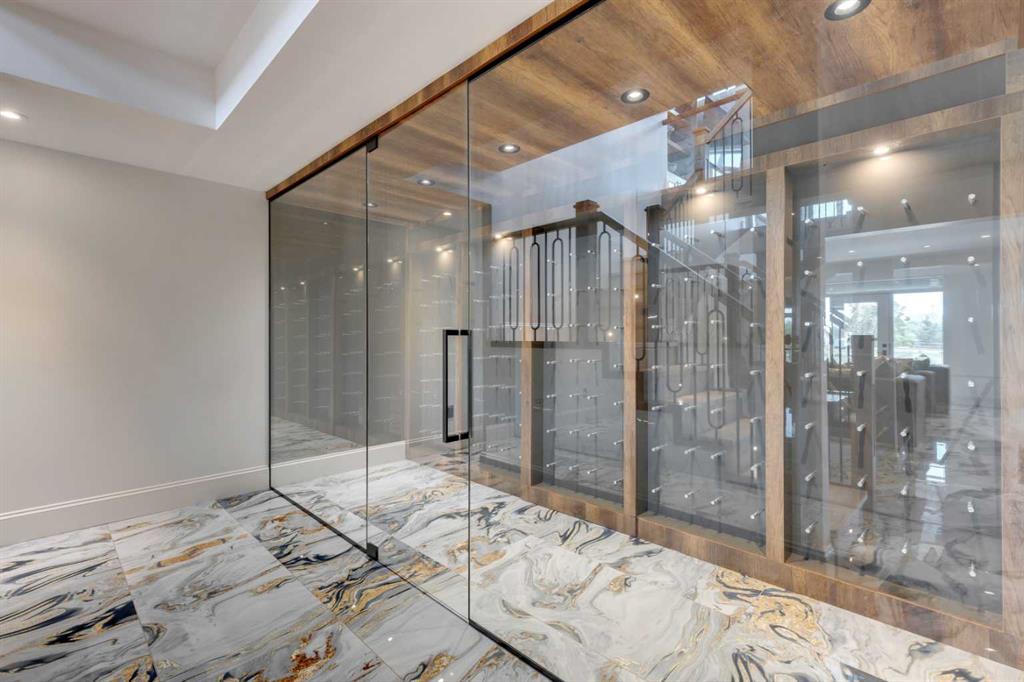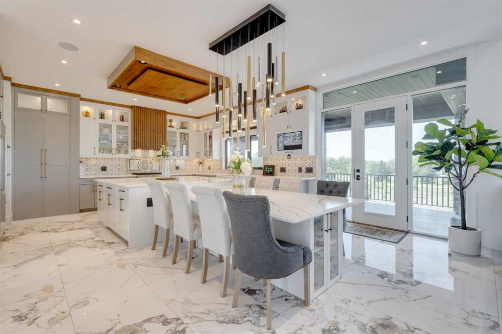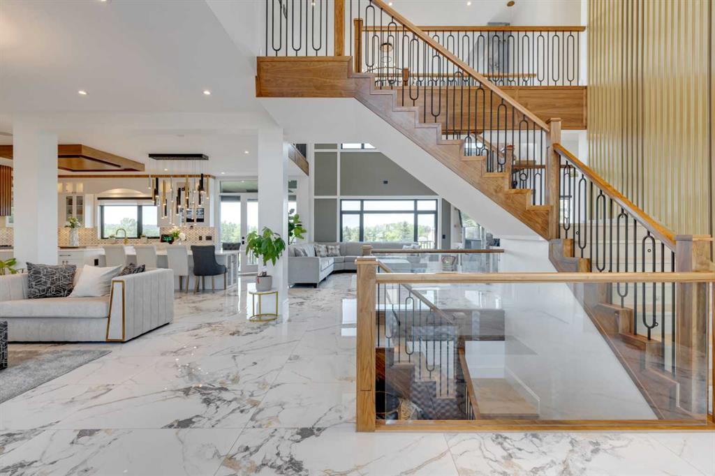 Located only seven minutes from Calgary and across the street from the Carnmoney Golf & Country Club, this exquisite acreage epitomizes luxury and exceptional design. Spanning just under 9,000 sq/ft of living space across three levels, this property boasts eight spacious bedrooms and nine bathrooms, equipped with smart toilets and top-of-the-line fixtures. It features three kitchens, perfect for entertaining and family gatherings, each with modern appliances and high-quality cabinetry. Additional amenities include a fully equipped home gym, a private home theater, and a massive wine cellar ideal for any connoisseur. The heated shop, with its own bathroom and mezzanine, offers a versatile space for various projects or storage needs. The master suite is a true highlight, covering over 700 sq/ft and featuring a private laundry. It opens onto an expansive west-facing balcony, over 800 sq/ft, offering stunning mountain views and a perfect spot to watch golfers at the Carnmoney Golf & Country Club. Every detail in this extraordinary home has been meticulously designed and executed, ensuring that nothing has been overlooked or underbuilt.