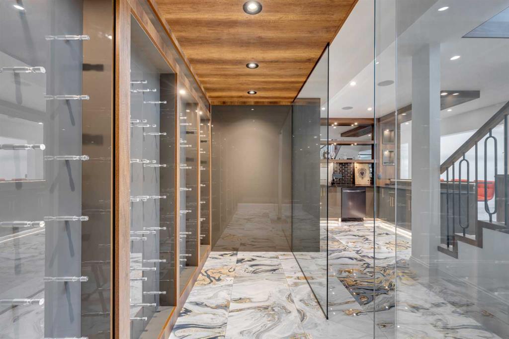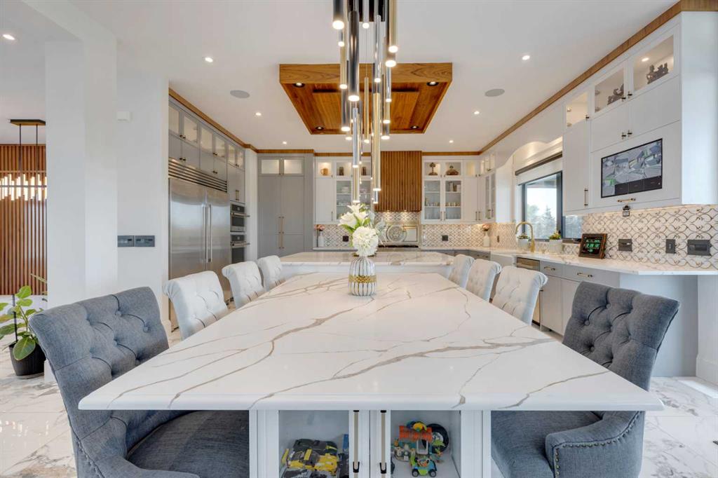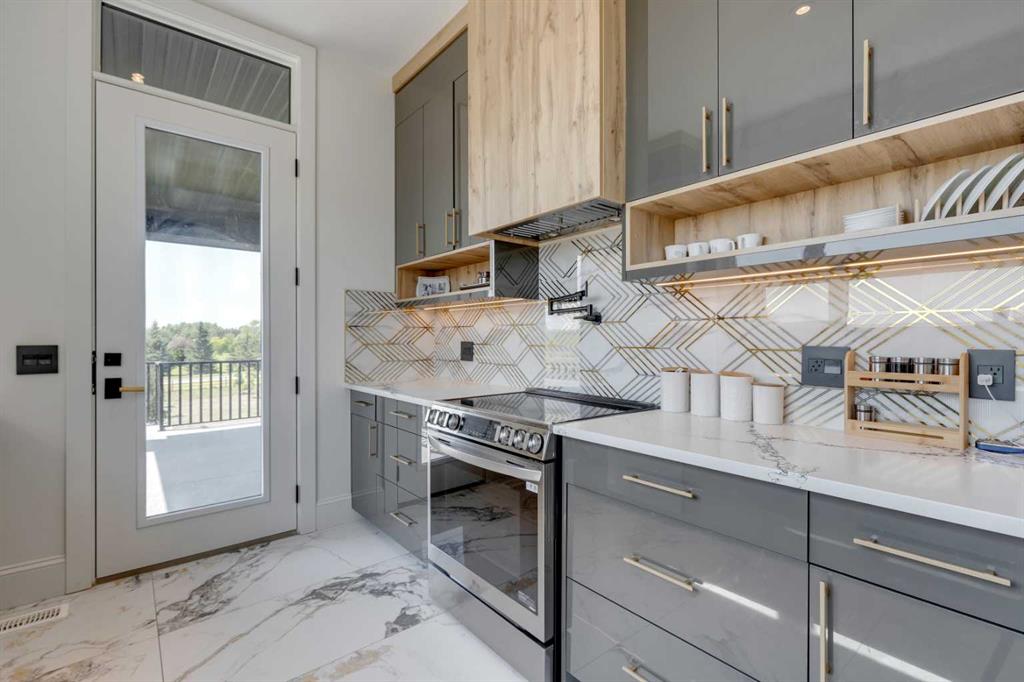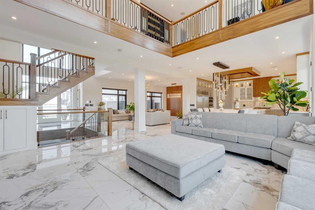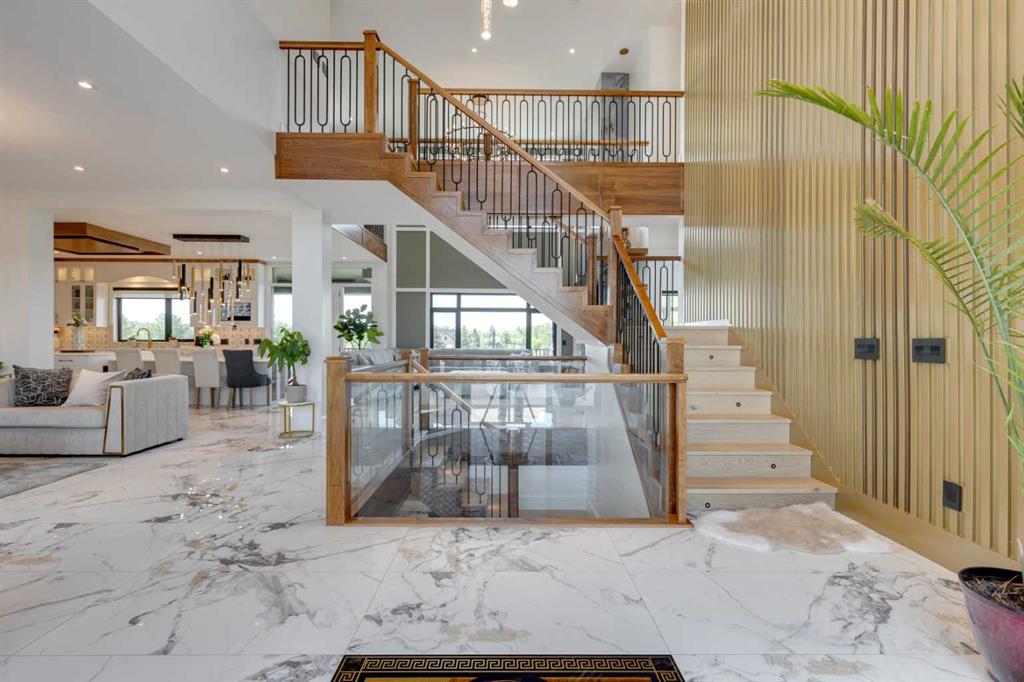 Located only seven minutes from Calgary and across the street from the Carnmoney Golf & Country Club, this exquisite acreage epitomizes luxury and exceptional design. Spanning just under 9,000 sq/ft of living space across three levels, this property boasts eight spacious bedrooms and nine bathrooms, equipped with smart toilets and top-of-the-line fixtures. It features three kitchens, perfect for entertaining and family gatherings, each with modern appliances and high-quality cabinetry. Additional amenities include a fully equipped home gym, a private home theater, and a massive wine cellar ideal for any connoisseur. The heated shop, with its own bathroom and mezzanine, offers a versatile space for various projects or storage needs. The master suite is a true highlight, covering over 700 sq/ft and featuring a private laundry. It opens onto an expansive west-facing balcony, over 800 sq/ft, offering stunning mountain views and a perfect spot to watch golfers at the Carnmoney Golf & Country Club. Every detail in this extraordinary home has been meticulously designed and executed, ensuring that nothing has been overlooked or underbuilt.