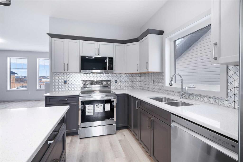 Brand new home in the peaceful Aurora subdivision! This thoughtfully designed 1,108 sq. ft. bungalow offers 2 bedrooms, 2 full bathrooms, and the potential to double your living space with an unfinished basement ready for your vision. Enjoy the modern touches throughout, including 9-foot ceilings, quartz countertops, a stylish kitchen backsplash, and a stunning island perfect for entertaining. The kitchen features solid wood cabinetry with soft-close doors, while the black-trimmed tri-pane windows add a sleek, energy-efficient finish. Step outside to a spacious covered deck, ideal for relaxing or hosting guests. The front yard will be landscaped with grass and a tree, and a concrete double driveway offers ample parking. A perfect blend of comfort, style, and future potential—don’t miss your chance to own this beautiful new build!