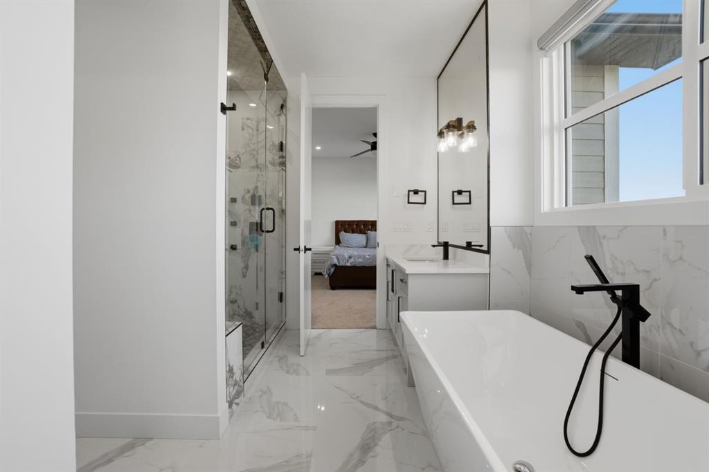 Main Level Bedroom | 4pc Bath | Top of the Line Finishes Throughout | Chef's Kitchen | Spice Kitchen | Quartz Countertops | Stainless Steel Appliances | Gas Stove| Electric Cooktop | Full Height Cabinets | Pantry | Open Floor Plan | Large Windows | Wide Plank LVP & Plush Carpet Flooring | Modern Pendant Lighting | Electric Fireplace with Floor to Ceiling Tile Accent Wall | 2 Upper Level Primary Bedrooms & 2 Additional Bedrooms | 3 Full Upper Level Baths | Upper Bonus Room with feature wall | Walk-in Laundry Room with Sink & Cabinetry | Separate Entry | Upper Deck | BBQ Gas Line | Triple Car Garage | Expansive Backyard | Incredible Location. Welcome to this stunning residence offering 2,689.37 sq. ft. of impeccably finished living space, with fully finished walkout basement, in the prestigious Waterford community of Chestermere — a perfect blend of elegance, comfort, and functionality. As you enter, you’re greeted by an open-to-above foyer filled with natural light. This level has a bedroom & 3pc bath making it great for multigenerational living. The heart of the home is the open concept chef's kitchen, dining & living rooms. The kitchen is outfitted with quartz countertops, full height cabinets, electric cooktop, built-in oven and microwave, a chimney range hood. The centre island for barstool seating is the perfect space for small meals or socializing while you host. The dining room has sliding glass doors to the deck with a gas BBQ line for outdoor cooking! The living room is centred with an electric fireplace & floor to ceiling tile accent wall behind. Head upstairs to be greeted with a bonus room with feature wall & plush carpet flooring. The 4 bedrooms on this level are broken down into 2 primary & 2 additional. The first primary bedroom is a personal oasis with a spa inspired 5pc ensuite with a deep soaking tub, a walk-in shower with a built-in bench & dual vanities. The 2nd primary has its own 4pc ensuite. The 2 additional bedrooms share the main 4pc bath. The upper level full laundry has a rinse sink & cabinet storage. The fully finished walkout basement adds even more versatility to this home, featuring two additional bedrooms and a full bathroom. Step outside to the expansive backyard with incredible lawn space. Everything you need is within reach; transit, parks, schools & all amenities. Hurry & book your showing today!